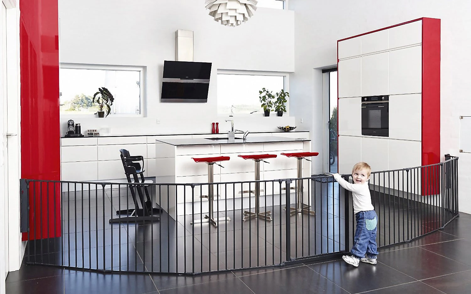 Das Konfigurationsgitter Flex XXL von Baby Dan bietet individuelle Flexibilität und Sicherheit für zu Hause. Die einzelnen Elemente können unterschiedlich angeordnet werden und bieten so viele Anwendungsmöglichkeiten. Es kann als Schutz vor dem Kamin oder Heizofen, als Raumteiler, als Schutzgitter vor breiten Türen oder vor Treppen verwendet werden oder sogar in ein geschlossenen Laufstall umwandelt werden. Es lassen sich Öffnungen von 90 bis 350 cm absperren, so dass das Gitter auch für große Bereiche optimal geeignet ist.