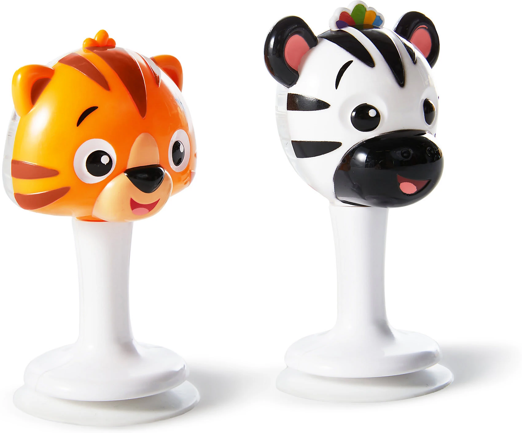 – Spielstation mit Saugnapf-lspielzeug: “Tinker der Tiger” und “Zen das Zebra”