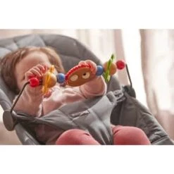 In der Babywippe Bliss Cotton von BabyBjörn ist der Nachwuchs immer sicher aufgehoben. Gleichzeitig trainiert das Schaukeln den Gleichgewichtssinn und die Motorik der Minis. Die Wippe punktet zusätzlich mit einer langen Verwendungsdauer und ihrem weichen, gesteppten Bezug aus reiner Baumwolle. Das Beste: Die Wippe kommt jetzt mit einem spannenden Spielbügel. Altersempfehlung: ab Geburt (3,5 kg) bis 2 Jahre Belastbarkeit Kinderliegesitz: bis 9 kg Belastbarkeit Stuhl: bis 13 kg Gewicht: 2,3 kg Klappmaß: 89,5(L) x 39(B) x 10(H) cm Funktionen: flach zusammenklappbar, 3 verschiedene Positionen, als Kinderstuhl verwendbar Ausstattung: ergonomisch geformter Sitz, verstellbares Rückhaltesystem, abnehm- und waschbarer Sitzbezug aus gestepptem Baumwollstoff, Spielbügel mit Befestigung Im ergonomisch geformten Sitz, der Rücken, Nacken und Kopf stützt, sind Neugeborene ab einem Mindestgewicht von dreieinhalb Kilogramm sicher aufgehoben. Das Rückhaltesystem lässt sich über die seitlichen Knöpfe öffnen und schließen; es ist in zwei Positionen einstellbar. Der Sitz schmiegt sich perfekt an den Nachwuchs an und garantiert damit eine gleichmäßige Gewichtsverteilung. So haben die Kleinen immer einen guten Halt. Dies ist besonders für kleine Babys wichtig, weil ihre Muskulatur noch nicht vollständig entwickelt ist. Um für den besten Komfort zu sorgen, lässt sich die Wippe in drei verschiedene Positionen zum Spielen, Ruhen und Schlafen bringen. Der gesteppte Bezug aus reiner Baumwolle ist extraweich und hautfreundlich. Bei Bedarf ist er abnehmbar und in der Waschmaschine waschbar. Die Wippe benötigt keine Batterien oder Kabel – sie wird durch die Eltern oder das Kind selbst sanft zum Schaukeln gebracht. Bei Bedarf ist die Wippe flach zusammenlegbar. So lässt sie sich in den Urlaub mitnehmen oder platzsparend in der Wohnung verstauen. Praktisches Detail: Wenn der Nachwuchs ohne Unterstützung aufrecht sitzen kann, wird aus der Babywippe ein bequemer Kinderstuhl. Dazu wird der Bezug einfach umgedreht. Der süße Spielbügel aus stabilem Stahl hat verschiedene Spielelemente aus Birkenholz und Kunststoff. Er ist für alle Babywippen von BabyBjörn und für Babys ab Geburt geeignet. Er lässt sich einfach und in beliebiger Höhe auf die Wippe aufstecken und sorgt so für ausgiebigen Spielspaß. Hinweise Um mögliche Verletzungen durch Verheddern zu verhindern, ist der Spielbügel zu entfernen, wenn das Kind beginnt, auf allen Vieren zu krabbeln. Der Spielbügel ist nur für den Hausgebrauch.