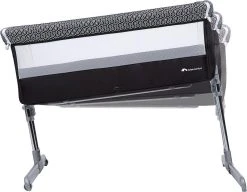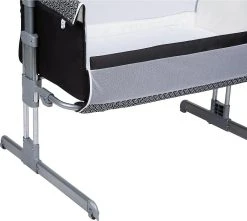 Das Beistellbett “Calidoo” der Marke Bebeconfort kann freistehend sowie als Beistellbett im Schlafzimmer genutzt werden. Die Liegefläche lässt sich in der Höhe verstellen und das Bett kann an den meisten Elternbetten sicher befestigt werden. Auch der Neigungswinkel kann eingestellt werden, was dem Vorbeugen von Verdauungsbeschwerden dient.
