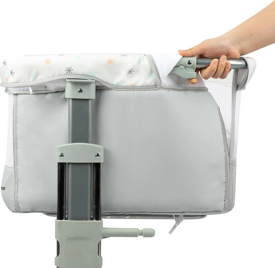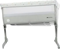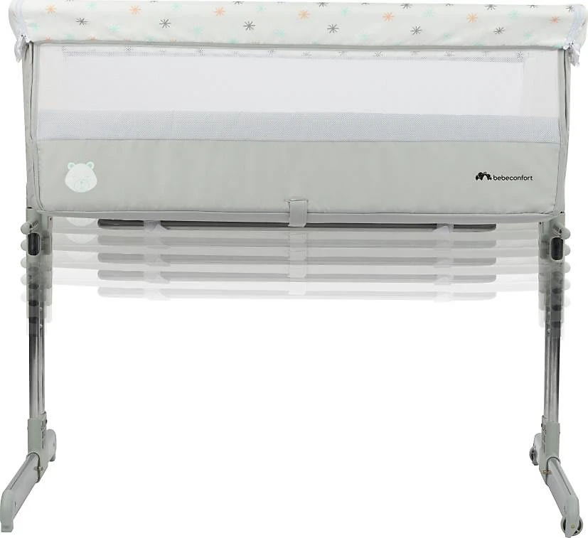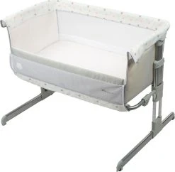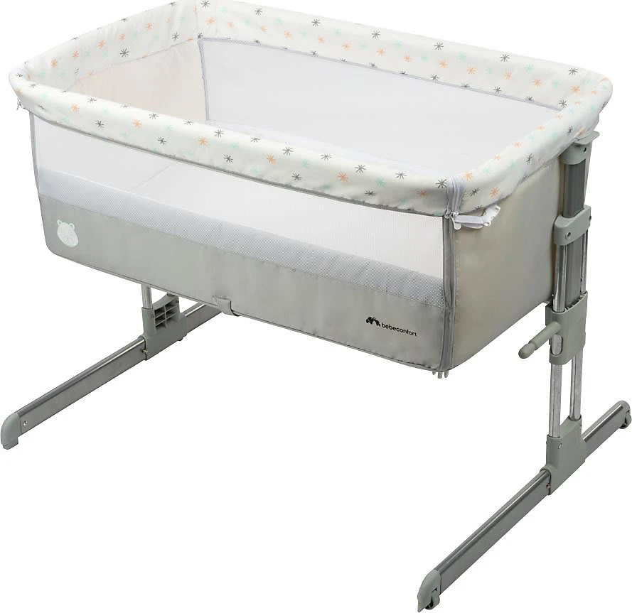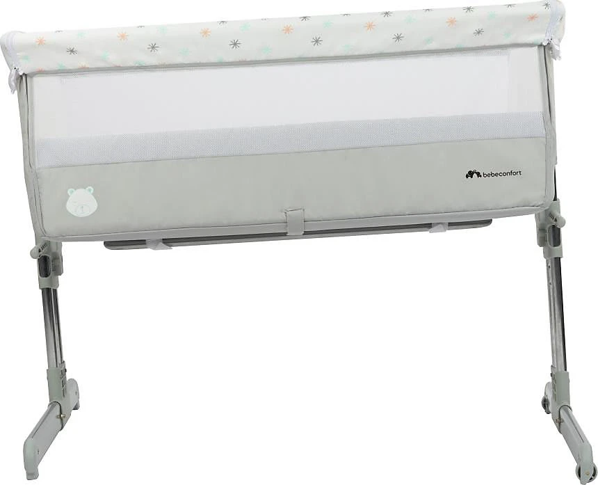 Das Beistellbett “Calidoo” der Marke Bebeconfort kann freistehend sowie als Beistellbett im Schlafzimmer genutzt werden. Die Liegefläche lässt sich in der Höhe verstellen und das Bett kann an den meisten Elternbetten sicher befestigt werden. Auch der Neigungswinkel kann eingestellt werden, was dem Vorbeugen von Verdauungsbeschwerden dient.