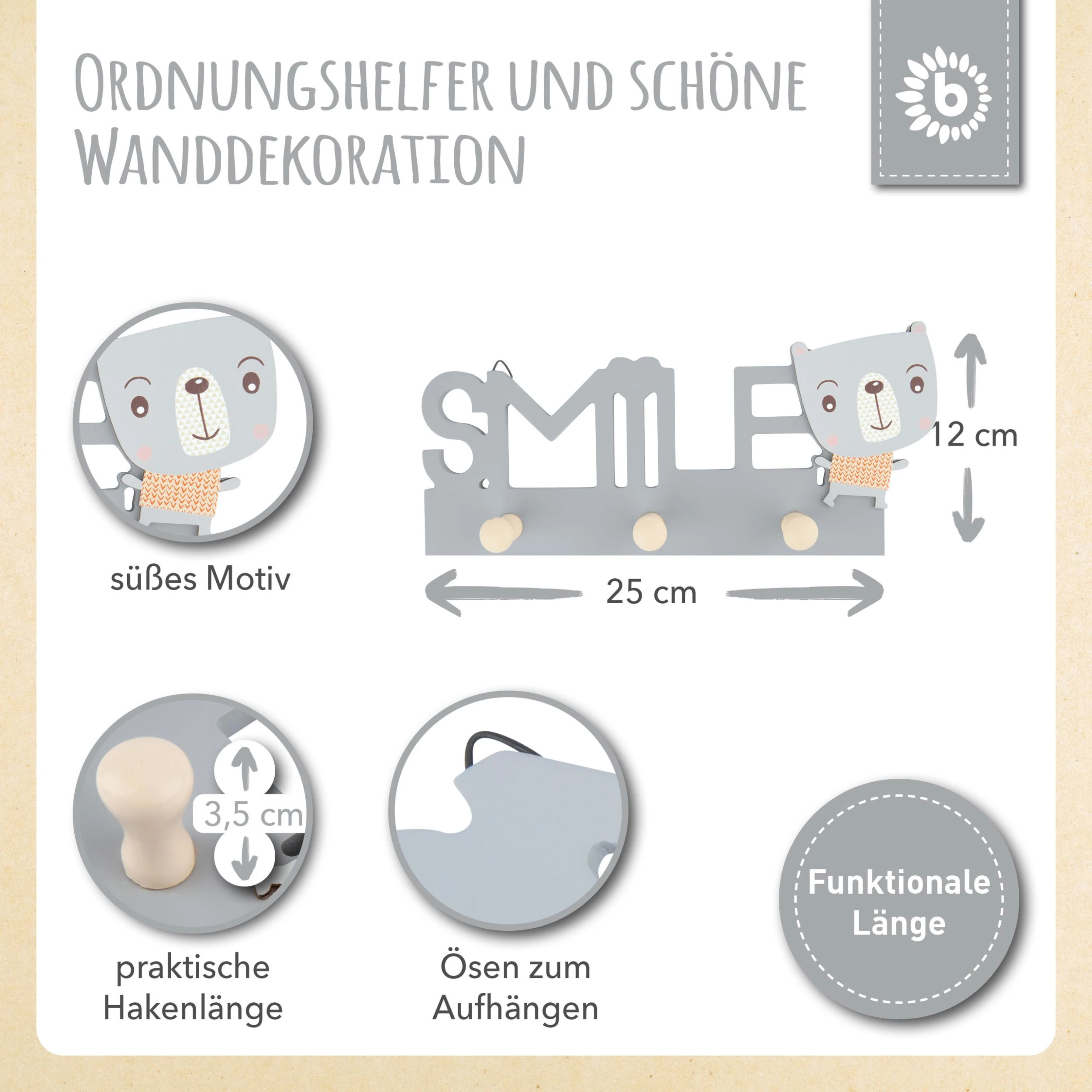 – Bezauberndes Design: Ein Blickfang für jedes Kinderzimmer. Wunderschöne Design Wandgarderobe für Kinder und Babys