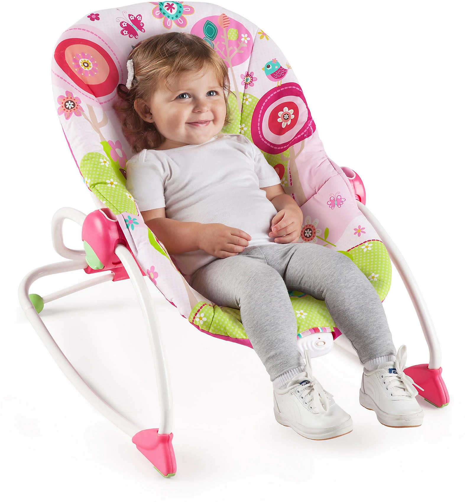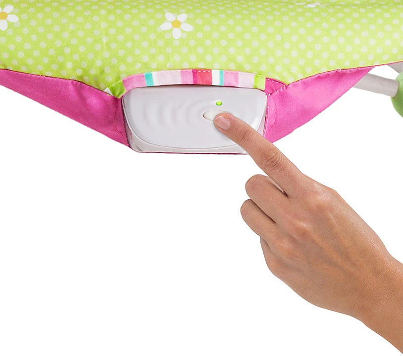 Süßer geht es einfach nicht! Die Raspberry Garden™-Wippe aus der Bright Starts™ Pretty in Pink™-Kollektion wimmelt nur so vor pinkfarbener Niedlichkeit für Ihr kleines Mädchen. Der Schaukelsitz kann zur Beruhigung vor und zurückbewegt oder in einer feststehenden Position arretiert werden. Beruhigt das Baby mit zwei einstellbaren Liegepositionen und besänftigenden Vibrationen. Der Spielzeugbügel bietet bis zu zwei Spielzeuge und lässt sich entfernen, um einen einfachen Zugang zu Ihrem Baby zu ermöglichen, oder die Wippe kann als spezieller Sitz für Kleinkinder genutzt werden. Da er mit seiner Größenverstellbarkeit mit Ihrem Kleinkind mitwächst, wird dieser wippenartige Sitz zu einem besonderen Sitzplatz für Ihren Nachwuchs. Unwiderstehlich modisch, einfach zu reinigen und sehr einfach zusammenzubauen. 30% Plastik, 30% Stahl, 39% Polyester, 1% Electronic 71.12 cm x 86.36 cm x 60.96 cm