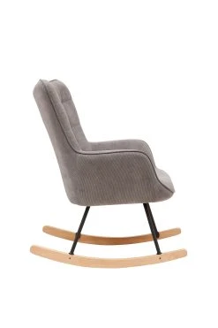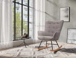 Entdecken Sie jetzt die pure Gemütlichkeit mit dem edlen Schaukelstuhl RICHIE. Der besondere Stuhl überzeugt mit einem zeitlosen und modernen Design, das einen trendigen Akzent in Ihrem Wohnzimmer setzt. Optische Highlights sind das Schaukelgestell aus schwarzem, pulverbeschichteten Metall und den Kufen aus Buchenholz. Der Sessel ist mit einem hochwertigem Stoff überzogen. Das Design wird durch eine zeitlose Ziernaht im Rücken unterstrichen.