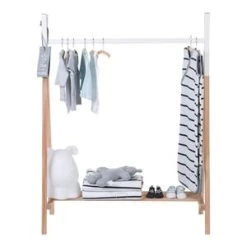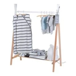 Praktisch und toll anzusehen: Der Kleiderständer Tipi von Childhome ist perfekt für das Baby- und Kinderzimmer. Material: Buchenholz Ausstattung: Kleiderstange und Ablage Maße: 107(L) x 48(B) x 137(H) cm Gewicht: 2,5 kg Der offene Kleiderschrank aus Holz ist ideal zum Aufhängen der Baby- und Kinderkleidung. Als zusätzliche Staufläche ist am unteren Ende ein Regal platziert. Der zweifarbige Look macht den Kleiderständer zum optischen Highlight im Kinderzimmer. Wenn das Childhome Tipi mal schmutzig wird, kann es einfach mit einem feuchten Tuch abgewischt werden.