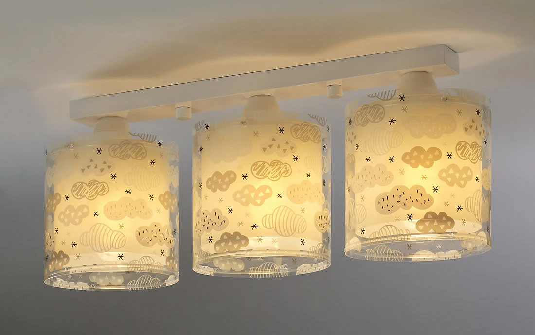 Diese Deckenlampe besitzt runde Lampenschirme aus robustem Kunststoff und zeigt sich mit zuckersüßen Wolkenmotiven. So begleitet sie Ihr Kind sanft in den Schlaf und beschert ihm tolle Träume.