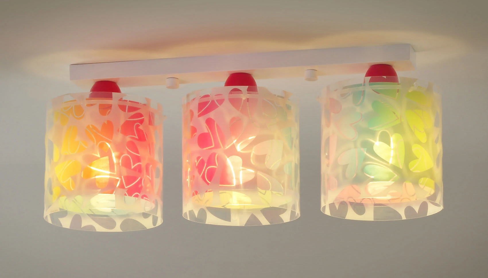 Diese tolle Deckenlampe von Dalber mit dem tollen buten Herzchenmuster wird schnell zum absoluten Hingucker in jedem Kinderzimmer.