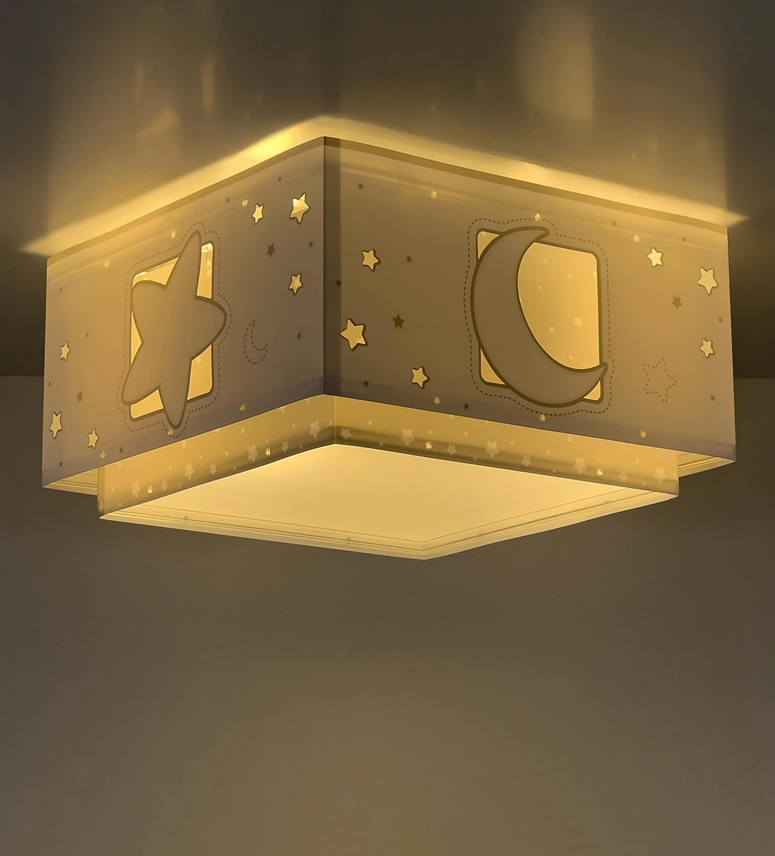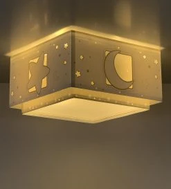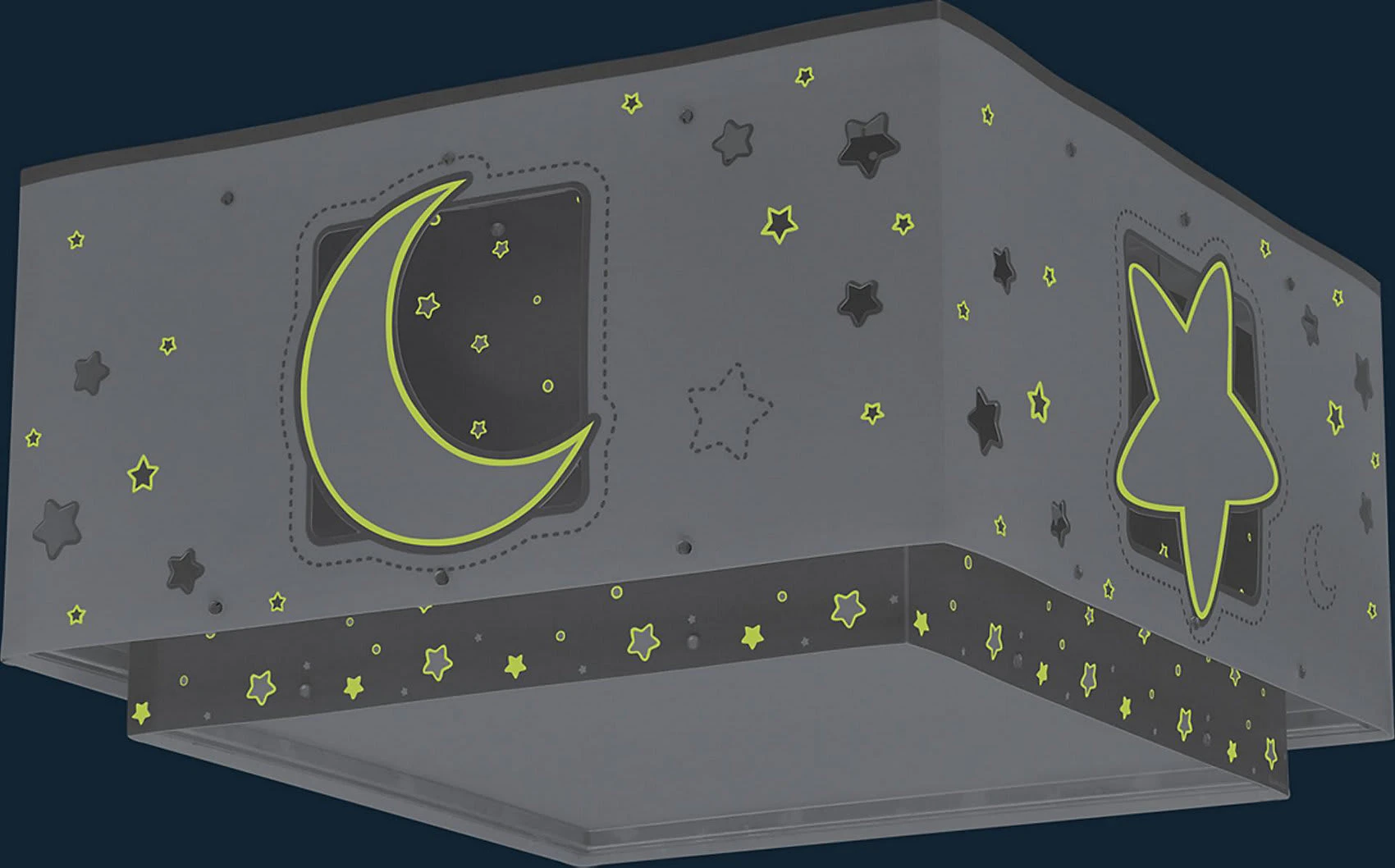 Die wundervolle Deckenleuchte “Moonlight” von Dalber ist ein toller Hingucker im Kinderzimmer und sorgt garantiert für Begeisterung! Die rechteckige Lampe im Nachthimmeldesign spendet angenehmes Licht und dient zugleich als Dekoration. Das perfekte Zubehör fürs Kinderzimmer!