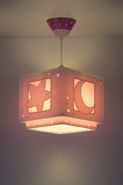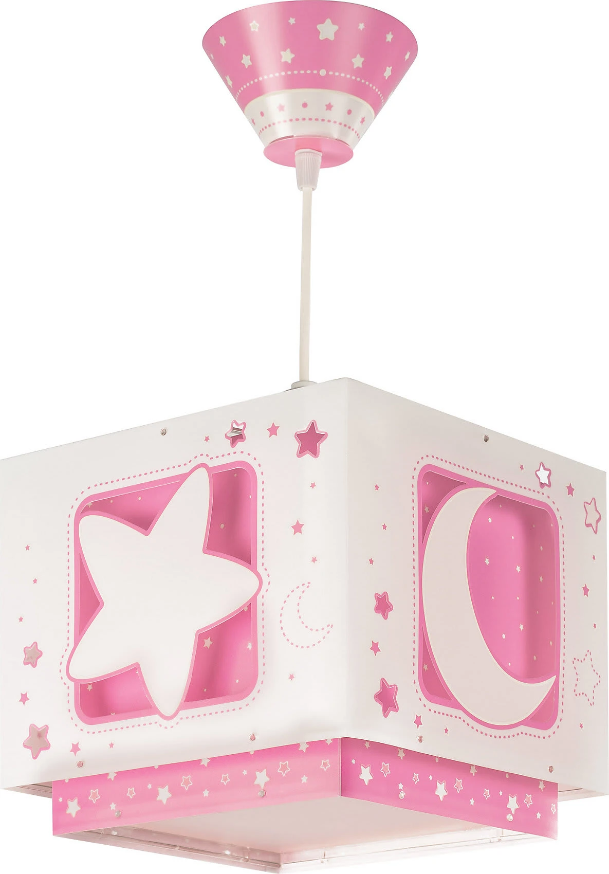 Diese niedliche Hängelampe in Rosa und Weiß ist ein echter Blickfang im Kinderzimmer. Mond und Sterne erhellen das Kinderzimmer mit einem warmen Licht.