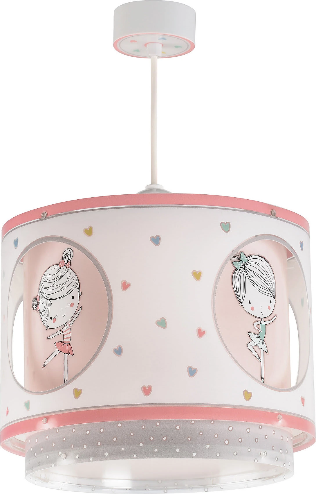 Un, deux, trois … Kleine Primaballerinas werden von dieser schönen Hängelampe sicherlich verzaubert sein. Zarte Pastelltöne und die besondere Gestaltung des Lampenschirms aus zwei Schichten versprechen, ein besonderer Eyecatcher im Kinderzimmer zu werden. Zudem sorgt die hübsch bedruckte Lampe für angenehmes und sanftes Licht im Reich der kleinen Prinzessin.