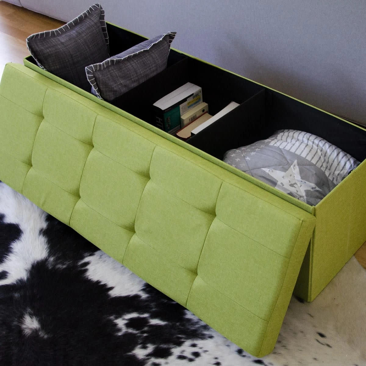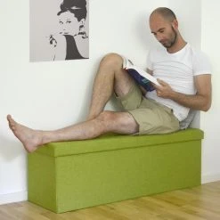 Der 2-Sitzer faltbare Bank mit verstellbarer Innen-Trennwand von DuneDesign ist mehr als eine Bank! Das schöne Möbelstück besticht nicht nur durch seine moderne, edle Leinen-Optik, die zu jedem Einrichtungsstil passt, sondern auch durch seine Doppel-Funktionalität. Die faltbare Truhe kann als bequeme Sitzgelegenheit für mehrere Personen, Fußablage, als kleiner Beistell- oder Nachtisch und natürlich als stauraum reiche Aufbewahrungskiste verwendet werden: Im Schlafzimmer vor dem Bett als Bettkasten, im Wohnzimmer vor der Couch als Fußhocker oder im Esszimmer als zusätzliche, attraktive, komfortable Sitzgelegenheit für Ihr Besuch. Egal ob Kinder oder Erwachsene – der Polstersitz ist bis 250 kg belastbar und hält viel aus. Auch im Kinderzimmer als große Spielzeugbox oder im Flur oder Diele als Schuhbank – die vielseitige Klapptruhe mit ca. 80 Liter Stauraum findet überall ihren Platz.
