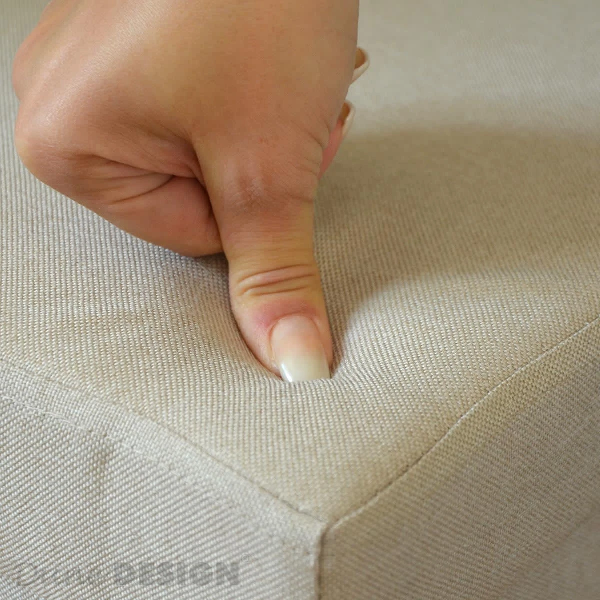 MODERN & PFLEGELEICHT: Die Oberfläche der großen Ottomane ist aus widerstandsfähigem Polyester in Leinen-Optik gefertigt. Das moderne, schlichte Material bleibt formstabil und dehnt sich nicht aus. Innen ist die Polsterbank mit Vließstoff verkleidet