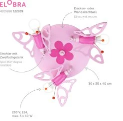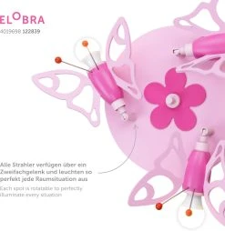 Die Elobra Deckenleuchte Rondell “Falter” kann an der Wand oder der Decke angebracht werden. Die Strahler mit Zweifachgelenk lassen sich beliebig drehen. So kann der Raum bestens ausgeleuchtet werden.