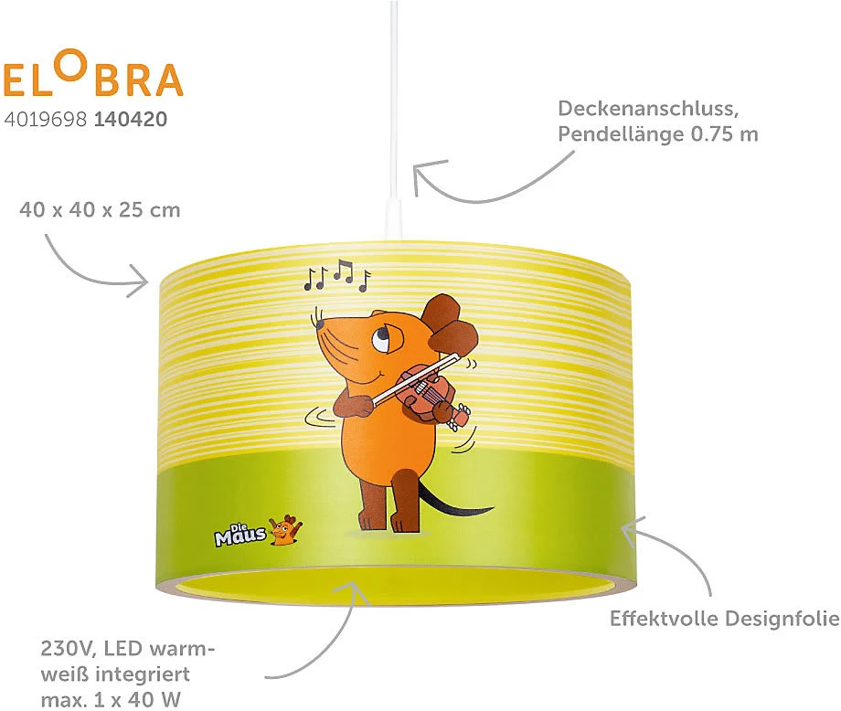 Diese Hängeleuchte verströmt ein angenehmes Licht im Kinderzimmer. Das tolle Motiv kommt auf der effektvollen Designfolie auf beiden Seiten des Schirms wunderbar zur Geltung.