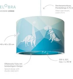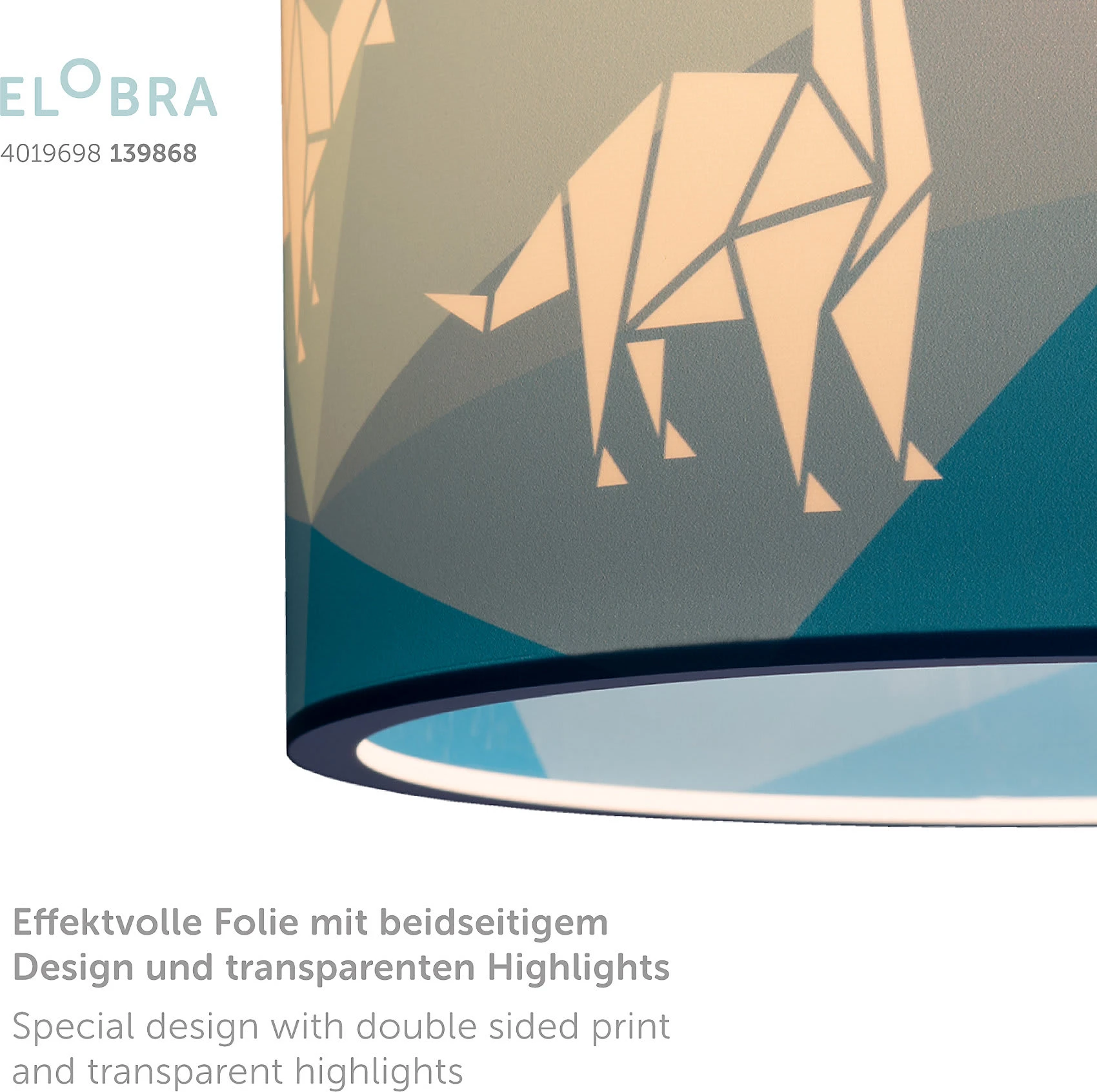 Diese Hängeleuchte verströmt ein angenehmes Licht im Kinderzimmer. Das tolle Motiv kommt auf der effektvollen Designfolie auf beiden Seiten des Schirms wunderbar zur Geltung.