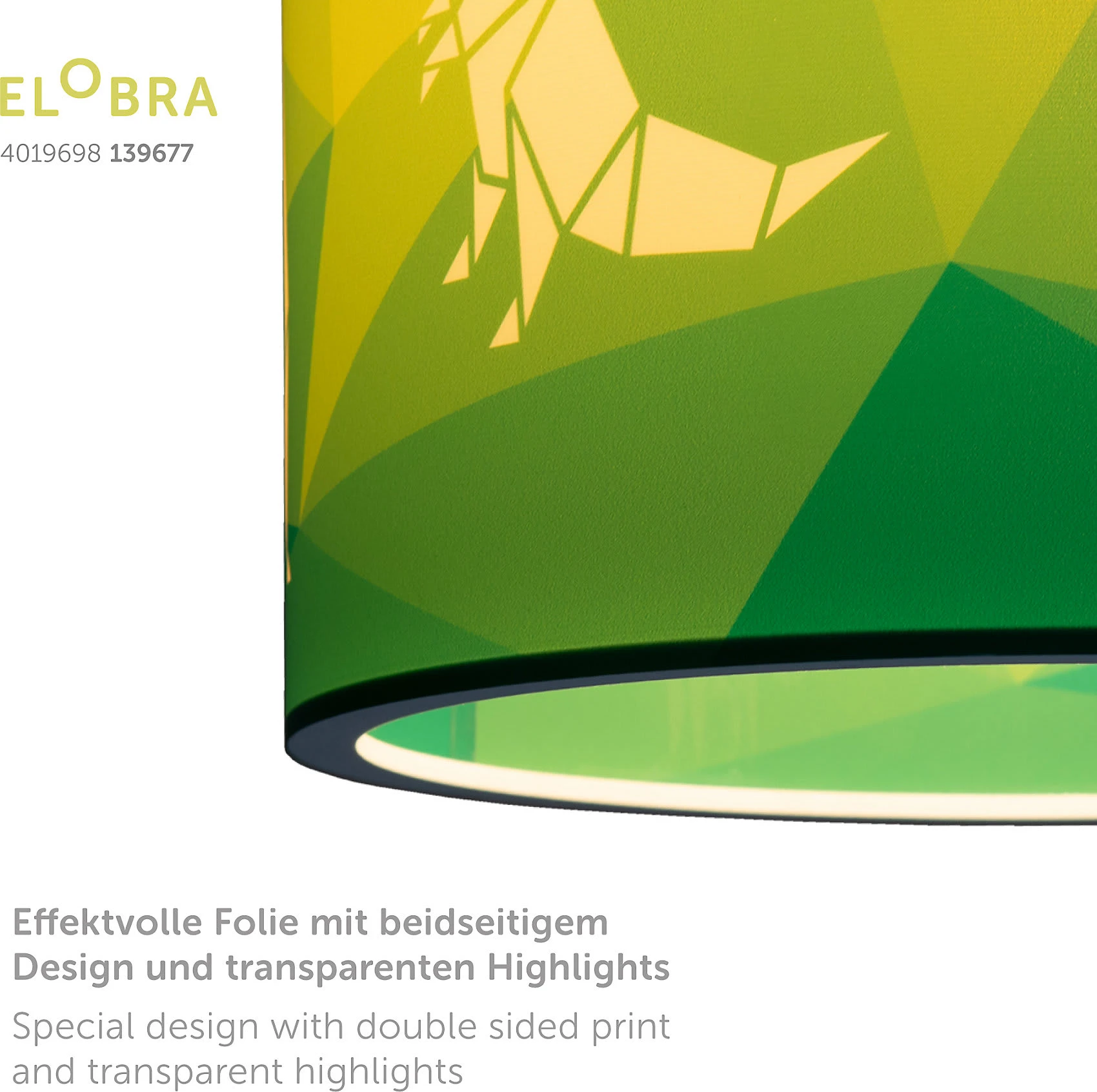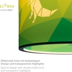 Diese Hängeleuchte verströmt ein angenehmes Licht im Kinderzimmer. Das tolle Motiv kommt auf der effektvollen Designfolie auf beiden Seiten des Schirms wunderbar zur Geltung.