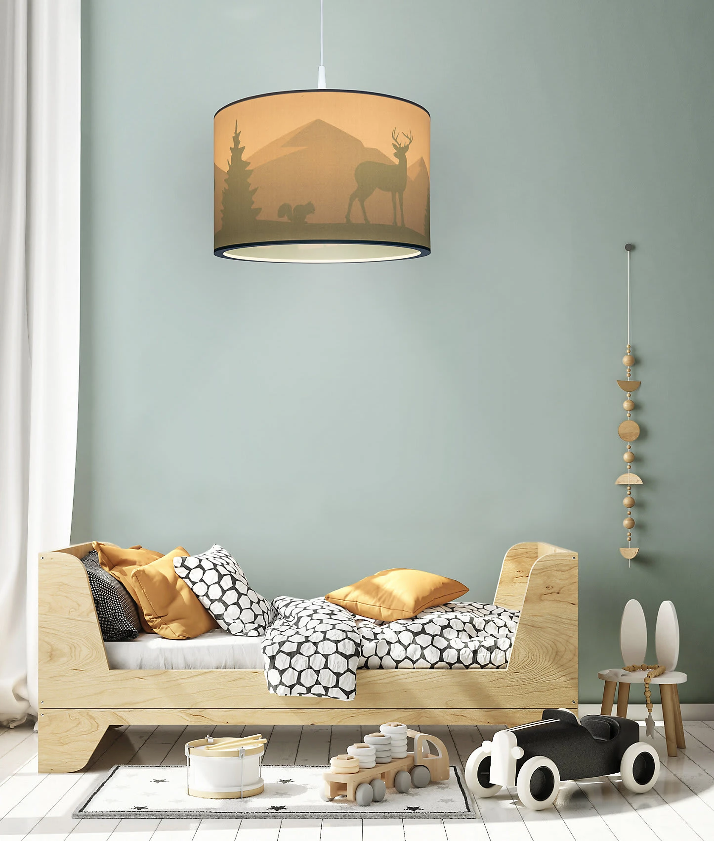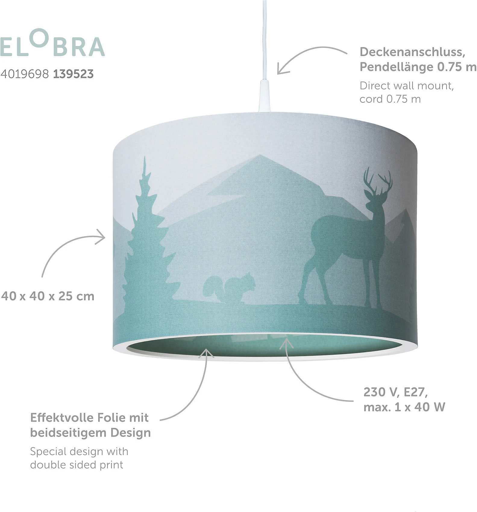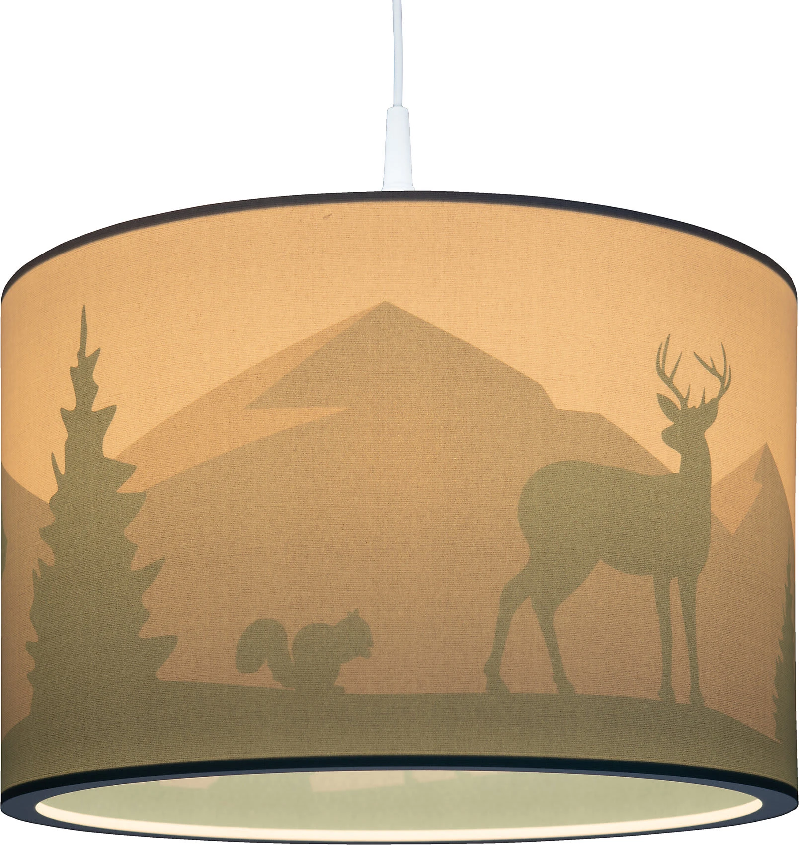 Diese Hängeleuchte verströmt ein angenehmes Licht im Kinderzimmer. Das tolle Motiv kommt auf der effektvollen Designfolie auf beiden Seiten des Schirms wunderbar zur Geltung.