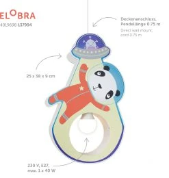 Die Elobra Pendelleuchte Little Astronauts “Panda” zeigt sich in fantasievollem Design und wird so zu einem echten Hingucker im Kinderzimmer.