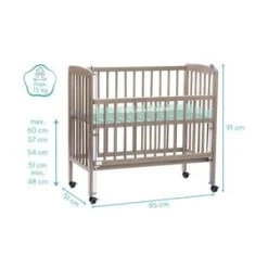 Mit dem Beistellbett Nino von Fillikid schläft der Nachwuchs neben den Erwachsenen. Das aus lackiertem Holz gefertigte Modell kann direkt mit dem Bett der Großen verbunden werden. Tagsüber ist es dank des verstellbaren Bettgitters und der praktischen Rollen als Stubenwagen nutzbar. Lieferumfang: Beistellbett Nino von Fillikid inkl. Befestigungsgurten und 5-fach höhenverstellbarem Lattenrost Material: Buche (massiv, lackiert) Verwendung: als Beistellbett, frei stehendes Babybett und Stubenwagen Belastbarkeit: bis 15 kg Maße: 95(L) x 51(B) x 91(H) cm, Liegefläche 90(L) x 45(B) cm, Lattenrost Höhe 48, 51, 54, 57, 60 cm Das Beistellbett Nino bietet dem Nachwuchs vom ersten Lebenstag an einen gemütlichen und sicheren Platz zum Entspannen und Träumen. Die Minis können es sich direkt neben den Erwachsenen auf der 90 mal 45 Zentimeter großen Liegefläche bequem machen. Sie ist höhenverstellbar, sodass sich das Beistellbett problemlos auf das Elternbett abstimmen lässt. Zur Auswahl stehen fünf verschiedene Einstellungen. Zur Fixierung am Bettrahmen der Großen dienen die zum Lieferumfang gehörenden Gurte. Soll das Beistellbett frei im Raum stehend oder als Stubenwagen Verwendung finden, wird einfach das Seitengitter geschlossen. Die vier feststellbaren Parkettrollen ermöglichen einen unkomplizierten Standortwechsel. Wichtig: Die Belastbarkeit des aus massivem, lackiertem Holz gefertigten Betts liegt bei 15 Kilogramm.