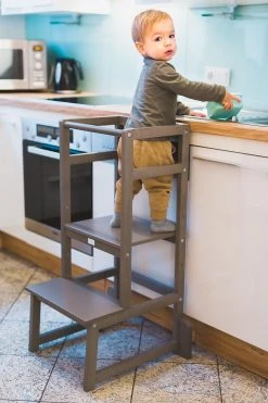 Der Lernturm “Vista” von fillikid ist perfekt für Kleinkinder, die immer selbstständiger werden und aktiv den Alltag mitgestalten möchten, doch nicht immer überall herankommen. Der umlaufende Rausfallschutz verhindert dabei zuverlässig ein Herunterfallen oder ins „Leere“ treten. Dank der dreifach höhenverstellbaren Trittfläche kann sich der Lernturm individuell an die Größe der Kinder anpassen. So können sie beim Kochen oder Backen jederzeit auf Augenhöhe zuschauen oder sogar mithelfen.