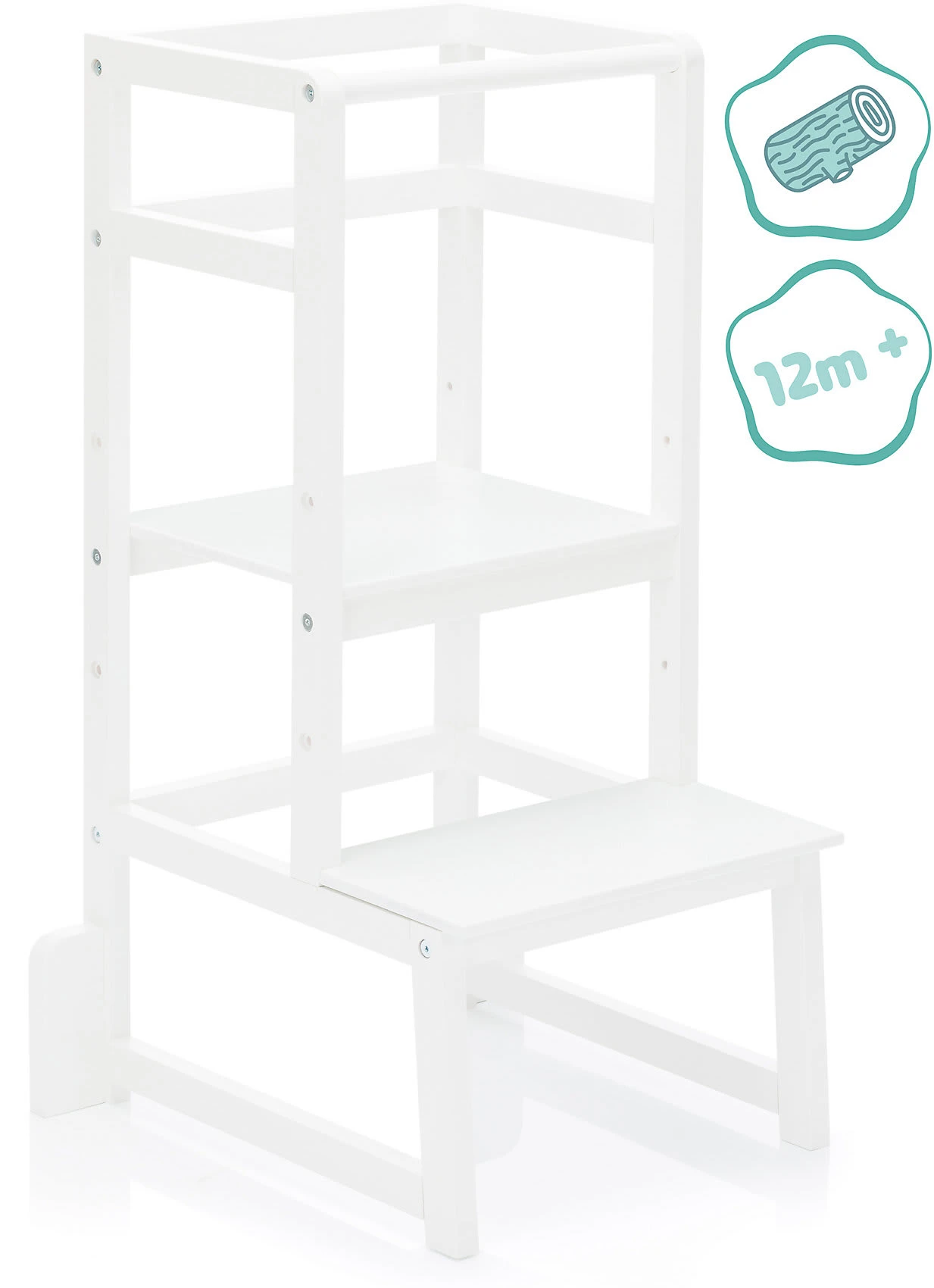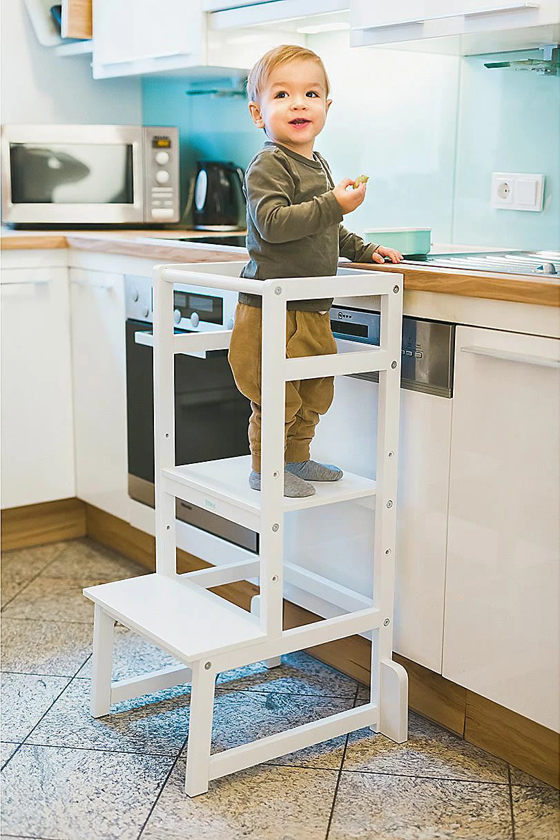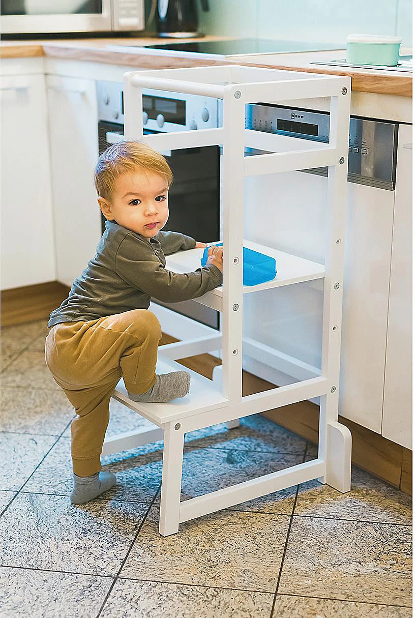 Der Lernturm “Vista” von fillikid ist perfekt für Kleinkinder, die immer selbstständiger werden und aktiv den Alltag mitgestalten möchten, doch nicht immer überall herankommen. Der umlaufende Rausfallschutz verhindert dabei zuverlässig ein Herunterfallen oder ins „Leere“ treten. Dank der dreifach höhenverstellbaren Trittfläche kann sich der Lernturm individuell an die Größe der Kinder anpassen. So können sie beim Kochen oder Backen jederzeit auf Augenhöhe zuschauen oder sogar mithelfen.