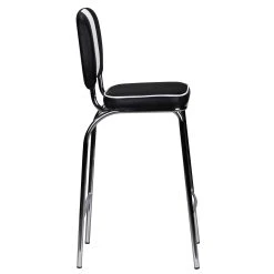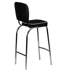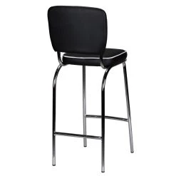 Design Retro Vintage Design American Diner Barstuhl Farblich abgesetzte Nähte in Weiß Üppige Sitz- und Rückenpolsterung Rücken farblich abgesetzt mit weißem Streifen mittig Fuß: Chrom Besonderheiten Maximale Belastbarkeit: 110 KG Material Bezug: Leder Optik (Oberfläche: 100% Polyurethan, Grundgewebe: 100% Baumwolle) Fuß: Chrom Maße ca. Höhe: 110 cm Breite: 40 cm Tiefe: 38 cm Sitzhöhe: 76 cm Rückenhöhe: 33 cm Rücken: 33 x 40 cm Sitzfläche: 38 x 35 cm Weitere Abmessungen: Siehe Bilder Lieferumfang 1 Retro Barstuhl Ohne Dekoration Montage Lieferung erfolgt zerlegt Leicht verständliche Aufbauanleitung wird mitgeliefert Zügige Montage dank gut durchdachter Konstruktion