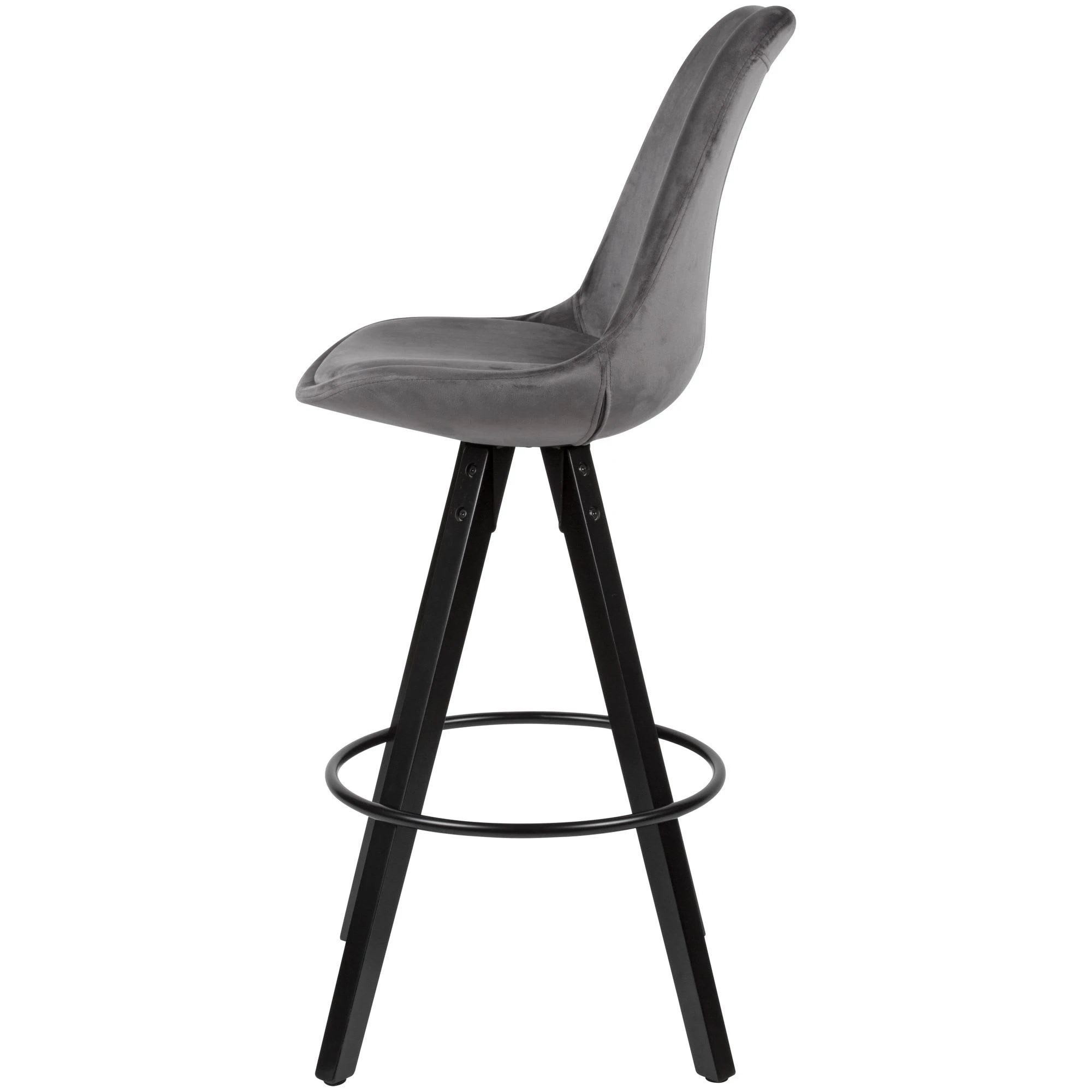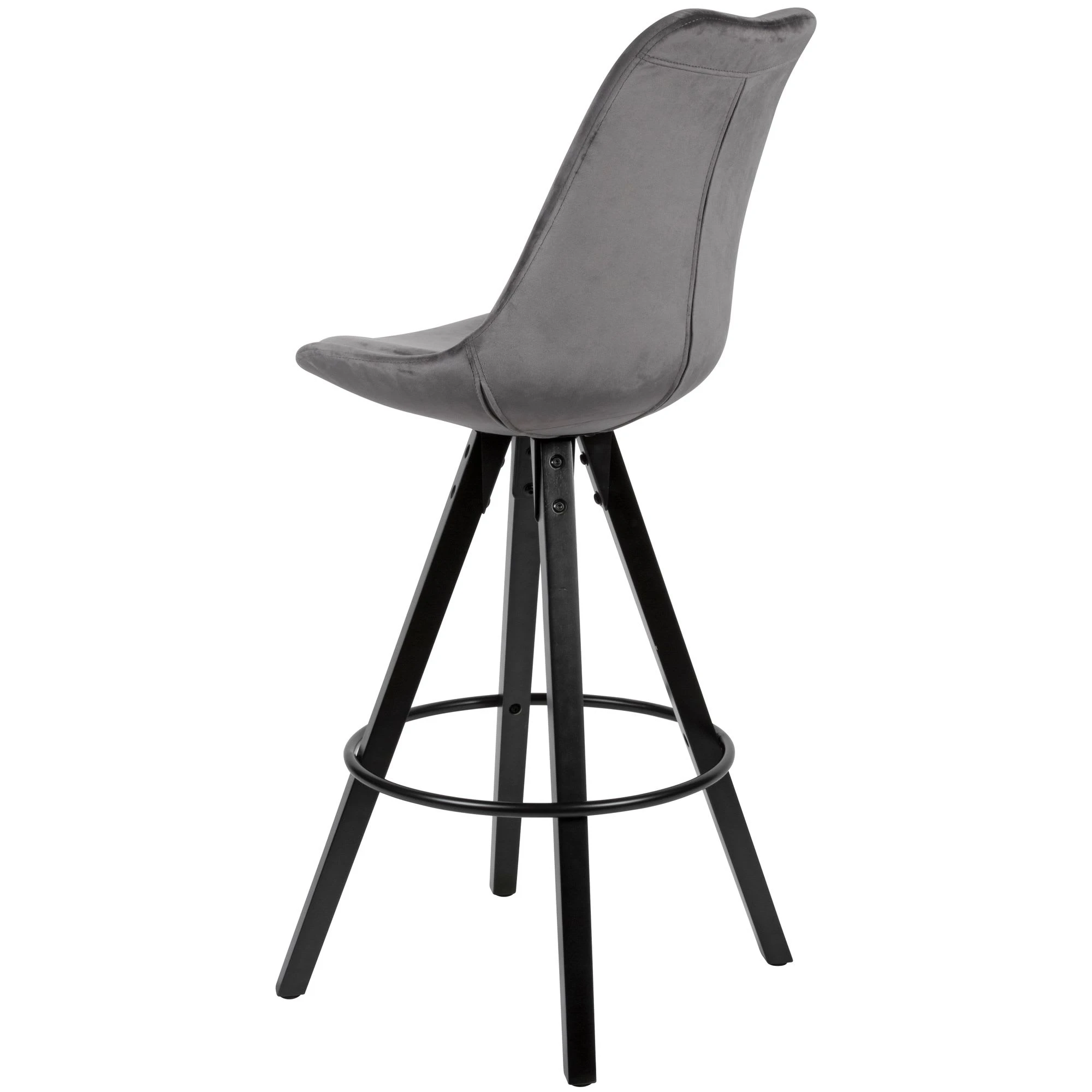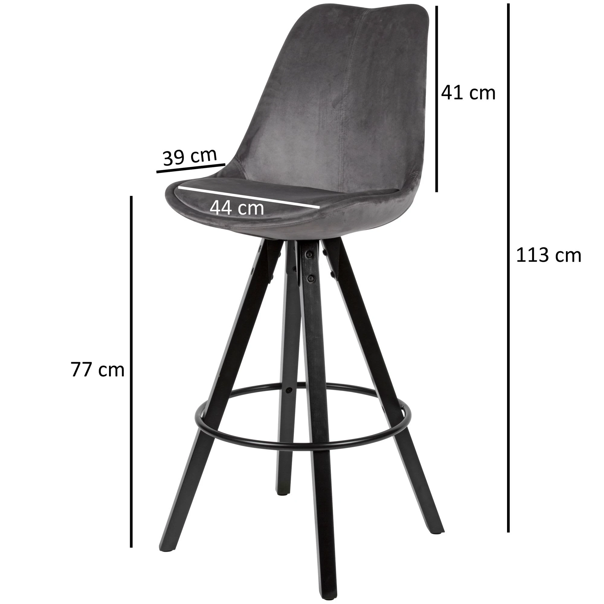 Design Barhocker 2er Set im modern interpretierten skandinavischen Design Üppige Polsterung der Sitzfläche & Rückenlehne Ring um das Vierbeingestell dient als Fußablage Sitzschale in ergonomischer Form Abmessungen Sitzhöhe: 77 cm Gesamthöhe: 113 cm Höhe Fußablage: 30 cm Sitzfläche (BxT): 44 x 39 cm Rückenlehne (BxH): 48 x 41 cm Durchmesser Fußablage: 45,5 cm Besonderheiten Fester Stand dank der nach außen gerichteten Beine Metallring um die Holzfüße dient zur Erhöhung der Stabilität und als Ablage für Ihre Füße Empfohlene Maximalbelastbarkeit je Hocker: 110 kg Vier Filzgleiter verhindern das Verkratzen Ihres Fußbodens & Wegrutschen des Hockers Material Sitzschale: Samt Beine: Hevea Massivholz, schwarz lackiert Fußablage: Metall Textilzusammensetzung Sitzschalenbezug: 100% Polyester Lieferumfang Ein 2er Set Barstühle Lieferung erfolgt ohne Dekoration Montage Lieferzustand: zerlegt und sicher verpackt Montageanleitung und -material liegen der Lieferung bei Pflegehinweise Der Stoff Samt sollte regelmäßig mit dem Staubsauger und den richtigen Polsteraufsatz abgestaubt werden.