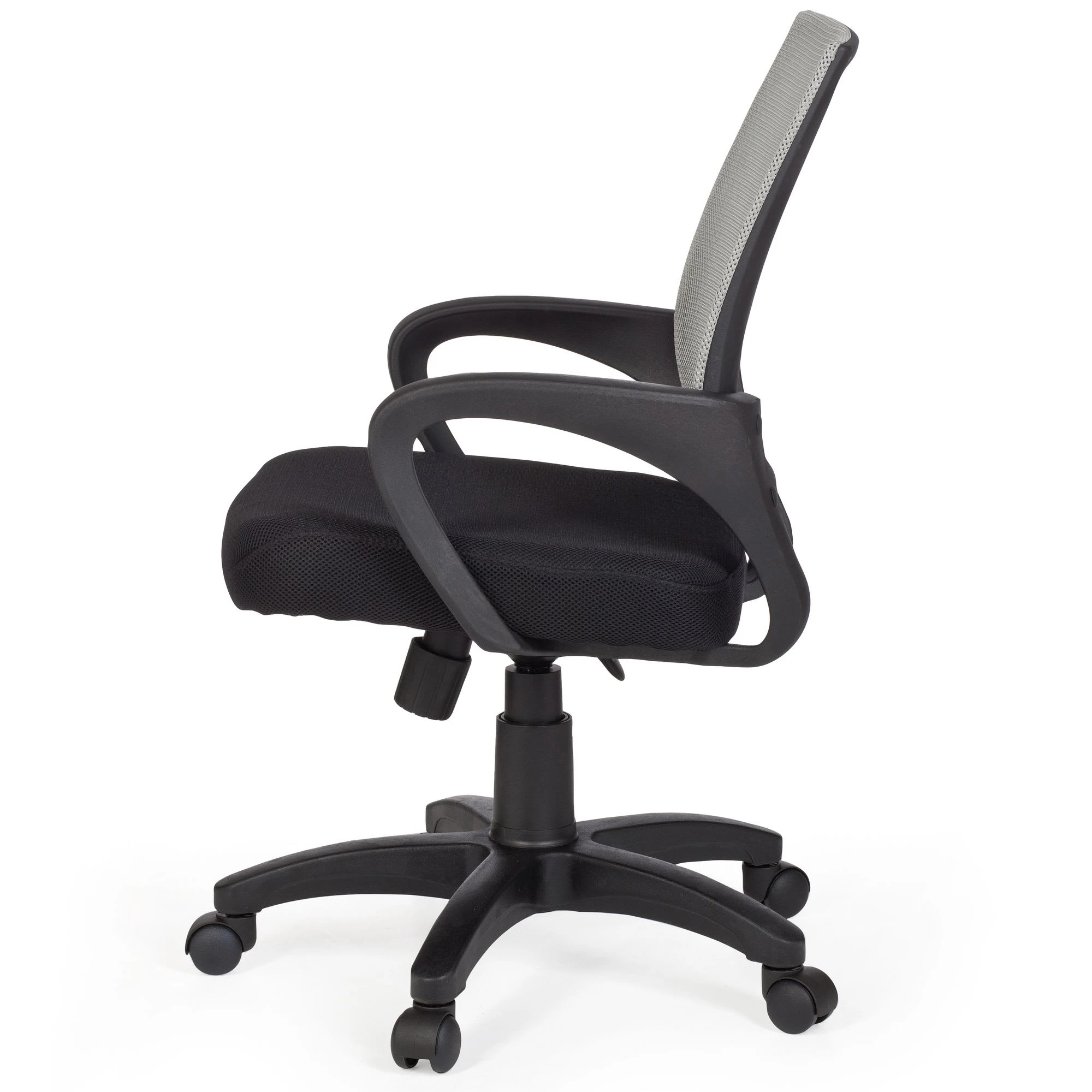 Design Extra breite Rückenlehne mit atmungsaktiven Netzbezug Sitz mit ergonomischer Polsterung Schöne geschwungene Kunststoff-Armlehnen Formschönes schwarzes Kunststoff-Fußkreuz Besonderheiten Wippmechanik arretierbar und auf das Körpergewicht einstellbar Empfohlene Maximalbelastbarkeit bis 120 kg Empfohlene Sitzdauer: 6 Stunden Material Stoff Fußkreuz & Armlehnen: Kunststoff Materialzusammensetzung 100% Polypropylen / Netz: 100% Nylon Polyamide Maße Höhe: 88 – 97 cm Breite: 57 cm Tiefe: 50 cm Sitztiefe: 45 cm Sitzbreite: 50 cm Sitzhöhe: 44 – 53 cm Armlehnenhöhe: 69 cm Rückenlehne: 45 x 46 cm Belastbarkeit: max. 120 kg Qualität Verwendung erstklassiger Materialien Präzise verarbeiteter Bezug Langlebige Konstruktion Stabiles Gestell für sicheren Stand Leichtgängige Laufrollen für Teppichboden geeignet Produktion nach neuesten Standards Lieferumfang 1 Drehstuhl Ohne Dekoration Montage Lieferung erfolgt zerlegt Leicht verständliche Aufbauanleitung wird mitgeliefert Zügige Montage dank gut durchdachter Konstruktion