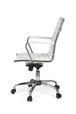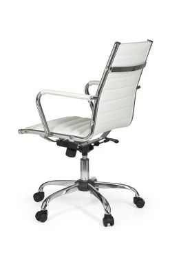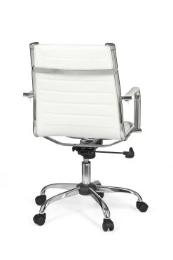 Information zu den Rollen:Im Lieferumfang sind 5 Teppichbodenrollen enthalten. Sollten Sie den Stuhl auf harten Böden (Parkett, Laminat…) verwenden wollen, empfiehlt es sich Hartbodenrollen separat zu erwerben. Auch die Anbringung von Bodengleitern ist möglich. PIN Durchmesser 11mm. Empfehlung: Hartbodenrollen EAN 4260298142752, Bodengleiter EAN 4250950219717 Design Eleganter Chromrahmen mit weicher Polsterung im Sitz-und Rücken für entspanntes Sitzen Armlehnen Metall verchromt mit abnehmbaren Softtexbezug Stabiles Fußkreuz aus Metall verchromt Besonderheiten Wippmechanik (arretierbar) auf das Körpergewicht einstellbar Rückenlehnenneigung mit Gegendruckregulierung individuell einstellbar Belastung bis 110 kg Material Kunstleder Textilzusammensetzung Oberfläche: 100% Polyurethan, Grundgewebe: 100% Baumwolle Maße Höhe: 93 – 101 cm Breite: 60 cm Tiefe: 57 cm Sitztiefe: 41 cm Sitzbreite: 50 cm Sitzhöhe: 47 – 55 cm Armlehnenhöhe: 71 – 79 cm Lieferumfang 1 Drehstuhl Lieferung erfolgt zerlegt mit Montageanleitung