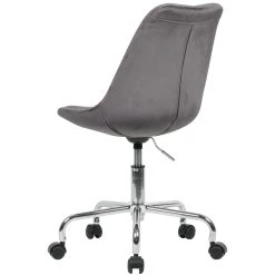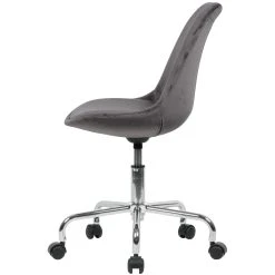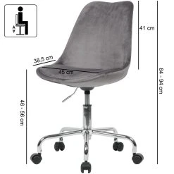 Design Moderner Schalenstuhl im attraktiven Design Fließender Übergang von Sitzfläche zur Rückenlehne Glänzendes Fußkreuz als ideale Ergänzung zum matten Stoff Abmessungen Breite: 65 cm Höhe: 84 – 94 cm Tiefe: 56 cm Sitzhöhe: 46 – 56 cm Sitzfläche (BxT): 48 x 41 cm Maximalbelastbarkeit: 110 kg Besonderheiten Durch die kompakte Größe des Stuhls ist dieser ideal für kleine Arbeitsbereiche geeignet Erleichtertes Hinsetzen und Aufstehen durch die 360° Drehfunktion Ausgestattet ist der Stuhl mit insgesamt fünf lastabhängig gebremsten Hartbodenrollen (für z.B. Parkett, Laminat, Fliesen…) Tipp: Um Ihren Fußboden zu schützen, empfehlen wir die Verwendung einer Bodenschutzmatte Material Bezug: Samt Fußkreuz: verchromtes Eisen Textilzusammensetzung Bezug der Sitzschale: 100% Polyester Lieferumfang Ein Drehstuhl ohne Dekoration Montagematerial und -anleitung liegen der Lieferung bei Montage Lieferzustand: demontiert und sicher verpackt Einfache Montage durch die leicht verständliche Aufbauanleitung Pflegehinweise Der Samt sollte regelmäßig mit dem Staubsauger und dem richtigen Polsteraufsatz abgestaubt werden.