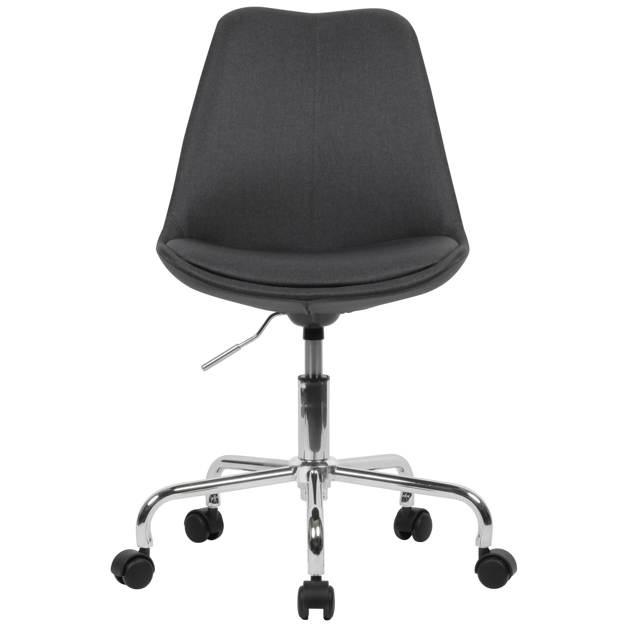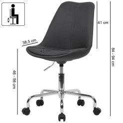 Design Moderner Schalenstuhl im attraktiven Design Fließender Übergang von Sitzfläche zur Rückenlehne Glänzendes Fußkreuz als ideale Ergänzung zum matten Stoff Abmessungen Breite: 65 cm Höhe: 84 – 94 cm Tiefe: 56 cm Sitzhöhe: 46 – 56 cm Sitzfläche (BxT): 48 x 41 cm Maximalbelastbarkeit: 110 kg Besonderheiten Durch die kompakte Größe des Stuhls ist dieser ideal für kleine Arbeitsbereiche geeignet Erleichtertes Hinsetzen und Aufstehen durch die 360° Drehfunktion Ausgestattet ist der Stuhl mit insgesamt fünf lastabhängig gebremsten Hartbodenrollen (für z.B. Parkett, Laminat, Fliesen…) Tipp: Um Ihren Fußboden zu schützen, empfehlen wir die Verwendung einer Bodenschutzmatte Material Bezug: Stoff Fußkreuz: verchromtes Eisen Textilzusammensetzung Bezug der Sitzschale: 100% Polyester Lieferumfang Ein Drehstuhl ohne Dekoration Montagematerial und -anleitung liegen der Lieferung bei Montage Lieferzustand: demontiert und sicher verpackt Einfache Montage durch die leicht verständliche Aufbauanleitung Pflegehinweise Der Stoff sollte regelmäßig mit dem Staubsauger und dem richtigen Polsteraufsatz abgestaubt werden.