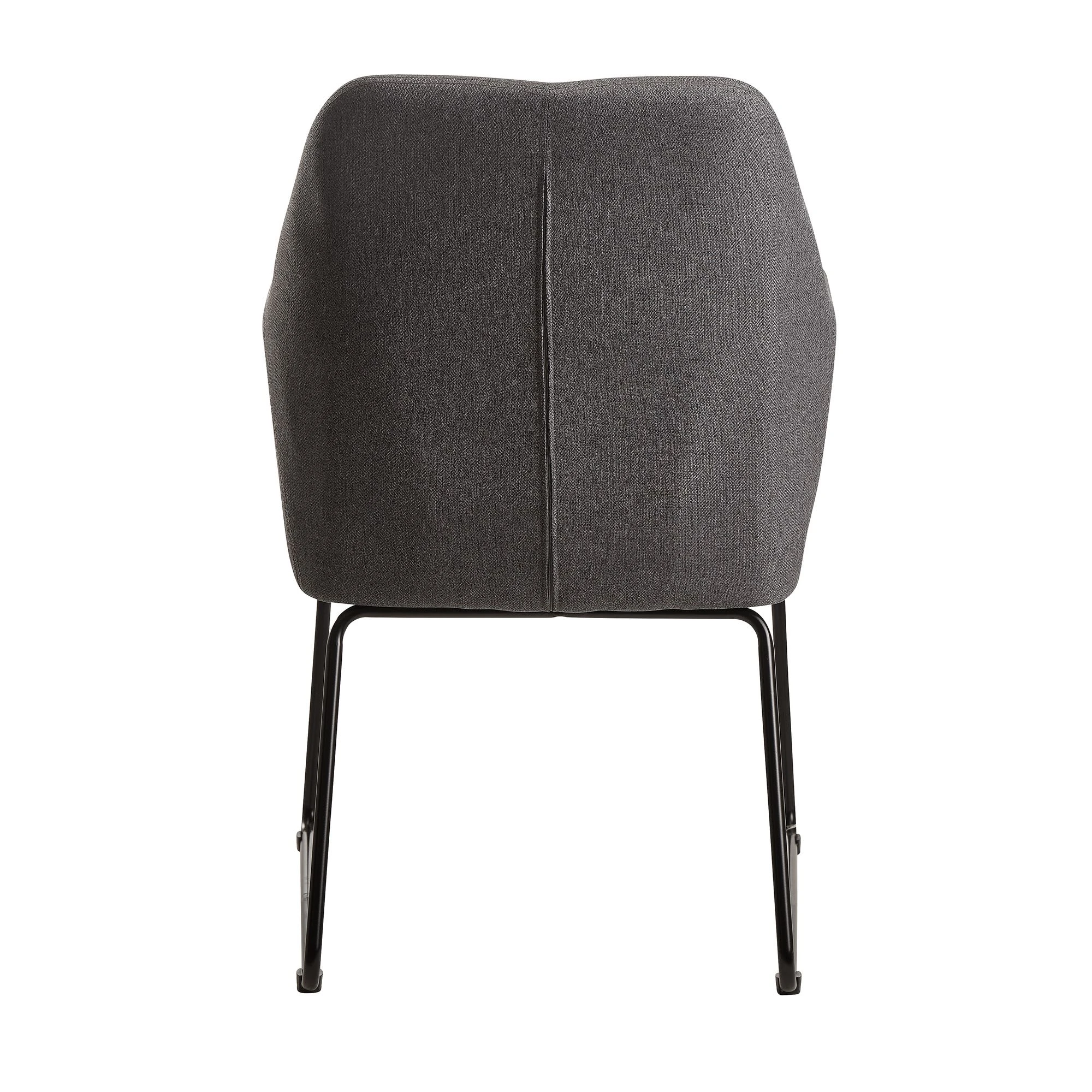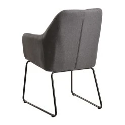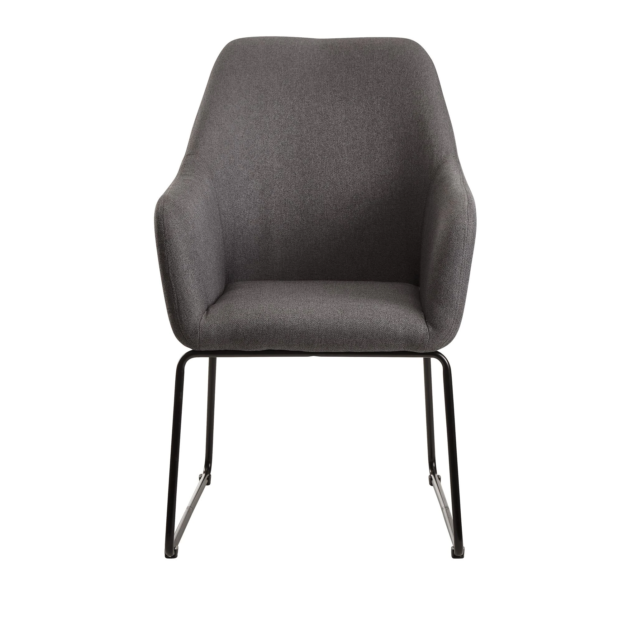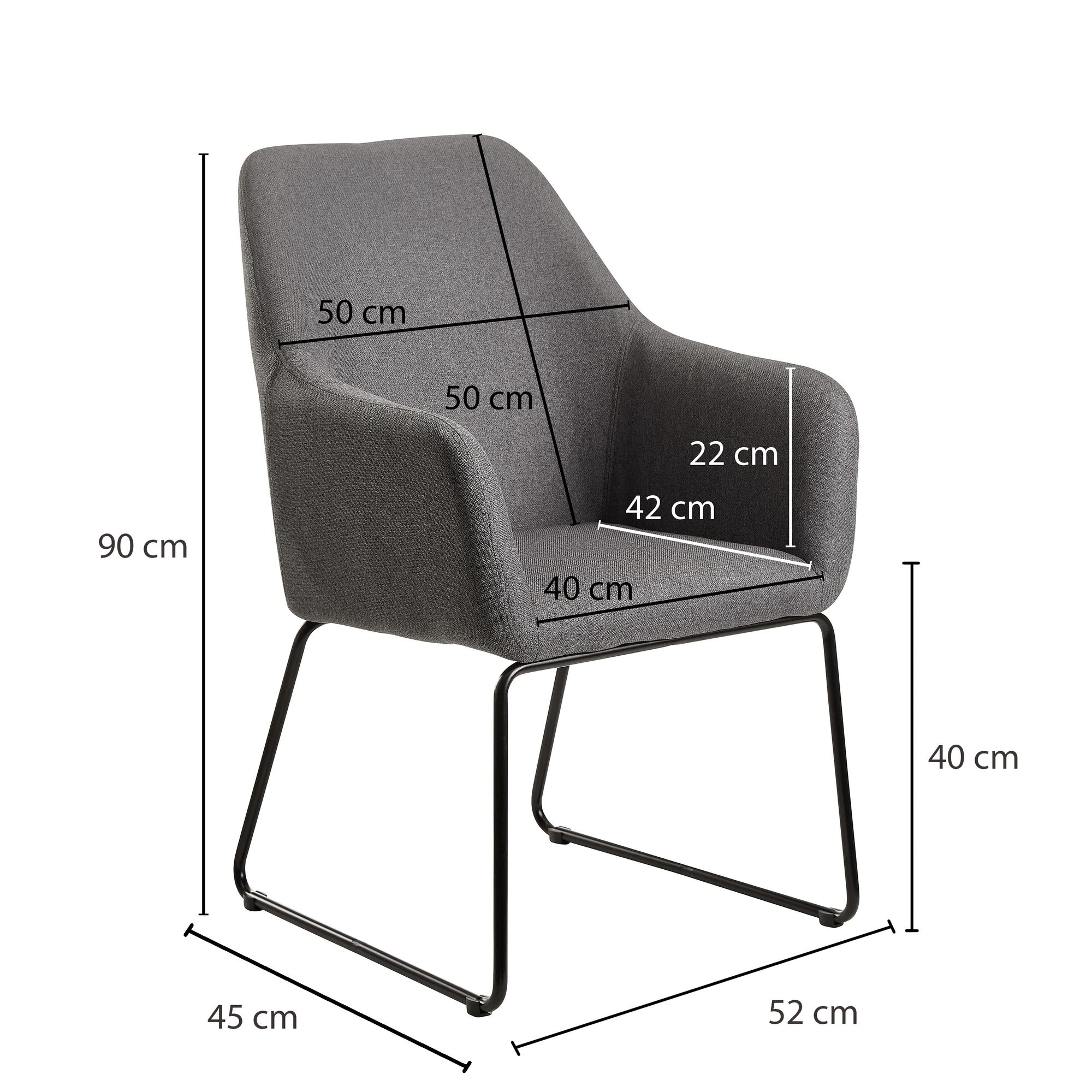 Design Moderner Esszimmerstuhl mit weichem Stoffbezug Sitzschale mit angenehmer Polsterung Zwei metallene Standbeine als Kontrast zum Sitzschalenbezug Abmessungen Breite: 52 cm Höhe: 90 cm Tiefe: 45 cm Sitzhöhe: 40 cm Sitzfläche (BxT): 40 x 42 cm Rückenlehnenhöhe: 50 cm Armlehnenhöhe: 22 cm Farbe Sitzschale: Dunkelgrau Beine: Schwarz Besonderheiten Kunststoffkappen an der Unterseite der Beine verhindern ein Quietschen oder Kratzen auf Ihrem Boden Die Sitzschale in Verbindung mit der üppigen Polsterung schafft längeren Sitzgenuss am Esstisch Durch die Metallbeine besitzen die Küchenstühle einen sehr sicheren und festen Stand Empfohlene Maximalbelastbarkeit je Stuhl: 110 kg Material Sitzflächenbezug: Stoff Beine: lackiertes Eisen Textilzusammensetzung Bezug Sitzschale: 100 % Polyester Lieferumfang Ein Esszimmerstuhl ohne Dekoration Montageanleitung und -material liegen der Lieferung bei Montage Lieferzustand: demontiert und sicher verpackt Einfache Montage durch die leicht verständliche Aufbauanleitung Pflegehinweise Der Stoff sollte regelmäßig mit dem Staubsauger und dem richtigen Polsteraufsatz abgestaubt werden.