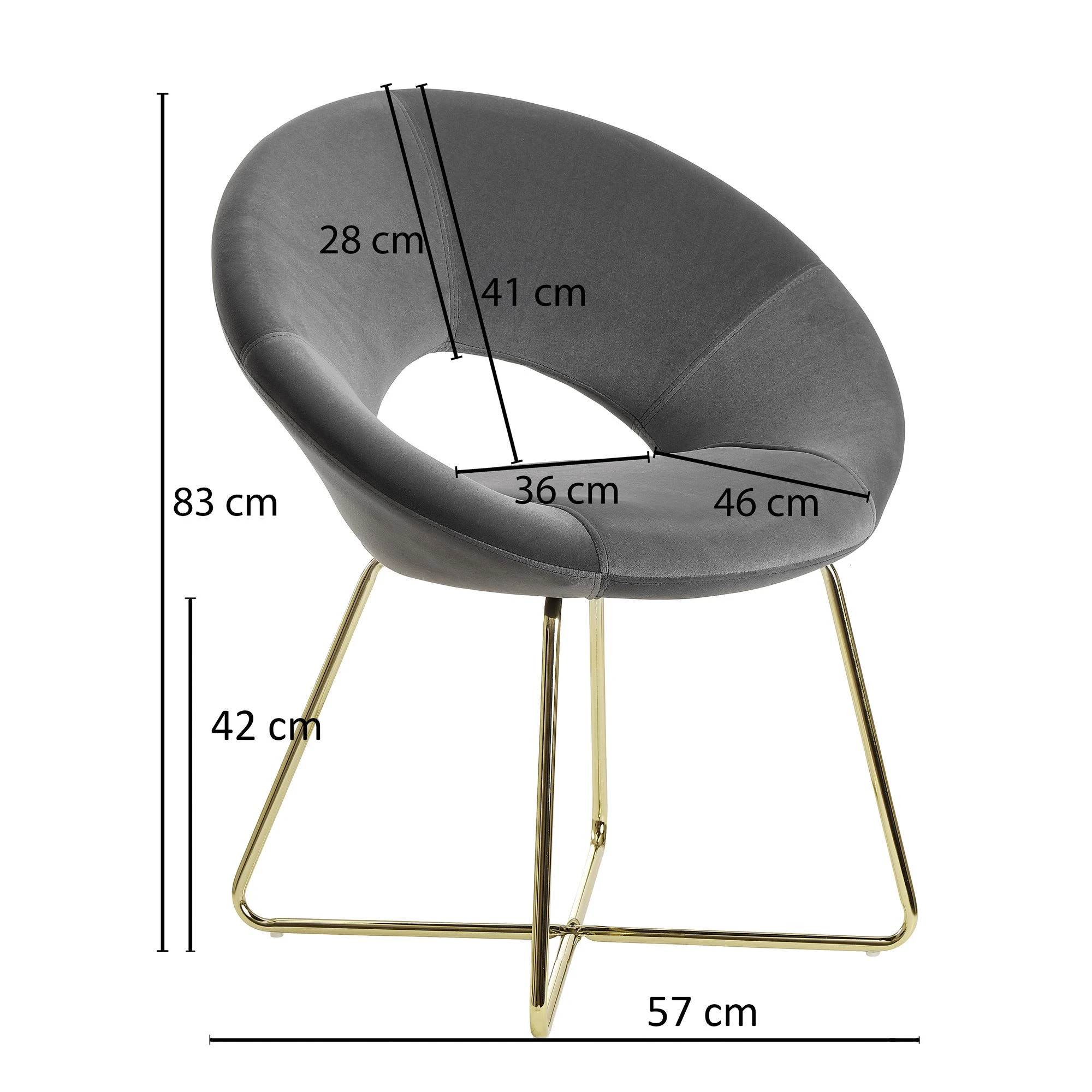 Design Moderner Esszimmerstuhl mit edlem Samtbezug Geschwungene & gepolsterte Sitzschale mit Rückenlehne Metallbeinkonstruktion als Kontrast zum weichen Sitzschalenbezug Abmessungen Breite: 57 cm Höhe: 83 cm Tiefe: 60 cm Sitzhöhe: 42 cm Sitzfläche (BxT): 36 x 46 cm Rückenlehnenhöhe: 41 cm Besonderheiten Kunststoffnoppen an der Unterseite der Beine verhindern ein Quietschen oder Kratzen auf Ihrem Boden Die Sitzschale in Verbindung mit der üppigen Polsterung schafft längeren Sitzgenuss am Esstisch Durch die Metallbeine besitzt der Küchenstuhl einen sehr sicheren und festen Stand Empfohlene Maximalbelastbarkeit: 110 kg Material Sitzschalenbezug: Samt Beine: lackiertes Eisen Textilzusammensetzung Bezug Sitzschale: 100 % Polyester Lieferumfang Ein Esszimmerstuhl ohne Dekoration Montageanleitung und -material liegen der Lieferung bei Montage Lieferzustand: demontiert und sicher verpackt Einfache Montage durch die leicht verständliche Aufbauanleitung Pflegehinweise Der Stoff sollte regelmäßig mit dem Staubsauger und dem richtigen Polsteraufsatz abgestaubt werden.