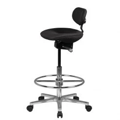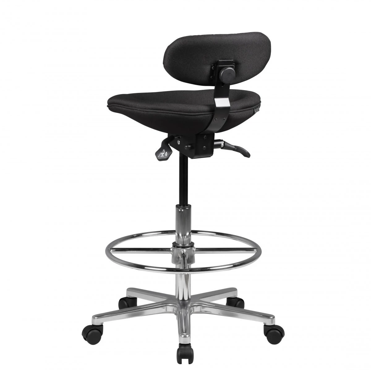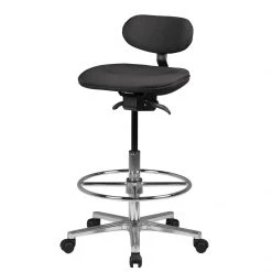 Design Modernes und zeitloses Design Höhenverstellbare Sitzfläche und Rückenlehne bietet optimalen Sitzkomfort Sitz aus PU-Formschaum mit speziell ausgeformter Sitzfläche zur Beckenentlastung und Förderung eines angenehmen Sitzens Formschönes und robustes Aluminium-Fußkreuz mit 60 cm Durchmesser – hohe Standsicherheit 5 große 50 mm Doppellaufrollen gebremst (für Teppichboden geeignet) Farbe Sitz: Schwarz Rückenstütze: Schwarz Fußkreuz: Silber Fußablage: Silber Gasdruckfeder: Silber Besonderheiten Sitzfläche und Fußablage drehbar – sorgt für freies und bequemes Arbeiten Querstreben der Fußablage sorgen für weitere Ablagemöglichkeiten der Füße Sitzfläche und Rückenstütze mehrfach in der Neigung verstellbar (Verhältnis 1:1) Rückenstütze stufenlos um 6 cm in der Höhe verstellbar (per Drehrad fixierbar) Aufgrund der Sitzhöhenverstellung von bis zu 25 cm ist der Hocker für Menschen von fast allen Größen sehr gut geeignet 100.000 Scheuertouren, dadurch extrem langlebig, robust und strapazierfähig (Je höher die Anzahl der Scheuertouren, desto langlebiger ist der Stoff) (Standard Anzahl der Scheuertouren bei Sitzhockern 25.000 – 35.000) Material Sitz: Stoff Fußablage: Metall verchromt Fußkreuz: Aluminium Materialzusammensetzung Oberfläche: 100% Polyester Maße Höhe: 83 – 114 cm Sitzhöhe: 60 – 85 cm Sitzbreite: 48 cm Sitztiefe: 39 cm Höhe vom Boden bis zur Fußablage: 17 – 40 cm Durchmesser Fußablage: 50 cm Belastbarkeit: max. 120 kg Lieferumfang 1 Arbeitshocker Ohne Dekoration