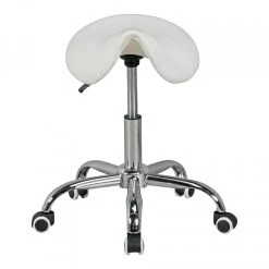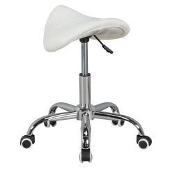 Design Sehr stabiler und extra bequemer Hocker Weiße Kunstleder-Sitzfläche in Sattelform Robuster Drehhocker mit stabilem Aluminium Fußkreuz Besonderheiten Rollhocker ist durch den Hebel an der Sitzunterseite um 12 cm höhenverstellbar Sitzfläche ist um 360° drehbar Empfohlene Maximalbelastbarkeit bis 100 kg Rollenhocker mit schwarz – weißen Hartbodenrollen ausgestattet Freie Beweglichkeit der Beine durch Sattelform gewährleistet Material Sitzfläche: Kunstleder Gestell: Metall Textilzusammensetzung Bezug Sitzfläche: 100% Polyurethan Maße Höhe: 48 – 60 cm Fußkreuz Ø: 60 cm Sitz (BxT): 38 x 35 cm Lieferumfang 1 Sattelhocker Lieferung erfolgt ohne Dekoration