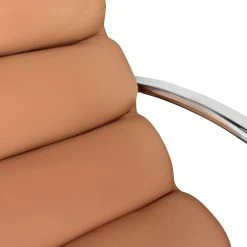 Design Wohngenuss und Sitzkomfort in außergewöhnlichem Design Ergonomischer Sitz mit üppiger Polsterung Stabile, formschöne Kombination aus Armlehne & Fuß Abmessungen Breite: 61 cm Höhe: 81 cm Tiefe: 111 cm Sitzhöhe: 28,5 cm Sitzfläche (BxT): 52 x 72 cm Ringe (BxH): 103 x 47 cm Sitzpolsterstärke: 15 cm Besonderheiten Besonders weiche Oberfläche durch die Polsterung mit Soft Touch Kunstleder Stuhl mit Wippfunktion – ideal zum Entspannen Schaumstoffflächen unterhalb der Metallringe schützen Material und Fußboden vor Kratzern Empfohlene Maximalbelastbarkeit: 120 kg Material Sitz: Kunstleder Metallringe: verchromtes Eisen Textilzusammensetzung Oberfläche: 100% Polyurethan Lieferumfang Ein Wippsessel ohne Dekoration Montageanleitung und -material liegen der Lieferung bei Montage Lieferzustand: demontiert und sicher verpackt Pflegehinweise Kunstleder ist sehr pflegeleicht. Flüssigkeiten mit einem trockenen Küchentuch aufsaugen und anschließend vorsichtig mit einem weichen, angefeuchtetem Tuch die Rückstände entfernen.