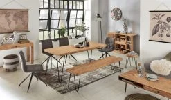 Wofür geeignet? Diese Sitzbank ist platzsparend und gleichzeitig ein optisches Highlight in Ihrem Ess- und Küchenbereich. Passende Ess- und Küchentische finden Sie in unserem Sortiment. Pflegehinweise: Die Oberfläche mit einem lauwarm angefeuchteten Baumwolltuch reinigen. Keine Scheuermittel, scharfen Reinigungsmittel oder tropfnassen Tücher verwenden. Keine weitere Behandlung der naturbelassenen Oberfläche (ölen, wachsen) notwendig. Design Moderne Sitzbank mit stabilen Metallbeinen Dank der Maserung einzigartig Abgerundete EckenBesonderheiten Gefertigt in Handarbeit Jeder Artikel ein Unikat Da es sich um Handarbeit und ein Naturprodukt handelt, kann es zu Farbabweichungen oder Unebenheiten kommenFarbe AkazieMaterial Massivholz AkazieLieferumfang 1 Bank Lieferung ohne DekorationMontage Lieferzustand: zerlegt und praktisch verpackt Leicht verständliche Montageanleitung inklusive Einfacher und schneller Aufbau dank gut durchdachter Konstruktion
