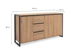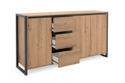2 große Fächer, 2 mittelgroße Fächer, 3 Schubladen und eine große Ablagefläche – all das bietet „Farina“ in minimalistischem Industrial-Look. Ein praktischer Hingucker, der sich spielend mit verschiedenen Wohnstilen geschmackvoll kombinieren lässt.