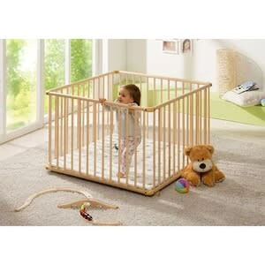 Das Laufgitter Belami Plus von Geuther ist mit seinen 4 Teppichrollen und der angenehm leichten Bauweise besonders einfach in der Wohnung zu bewegen. So kann Dein Baby immer und überall dabei sein. Laufgitter von Geuther mit gepolstertem Einlegeboden aus massivem Buchenholz Innenmaß: 91,8(L) x 91,8(B) cm bis 15 kg belastbar Gefertigt ist das Laufgitter aus massivem Buchenholz. Das macht es besonders stabil und sicher. Der dreifach höhenverstellbare Boden ist gepolstert und sorgt für ein angenehmes Laufen, Sitzen und Liegen. Gleichzeitig wächst dieses Möbelstück durch die Verstellbarkeit mit, das Hineinsetzen sowie Herausnehmen des Nachwuchses ist bei entsprechend eingestelltem Boden rückenschonend möglich. Abgerundete Ecken und runde Gitterstäbe sorgen für hohe Sicherheit und machen das Anfassen für den Nachwuchs angenehm. Das Laufgitter lässt sich dank seiner durchdachten Bauweise leicht zusammenbauen und wieder in seine Einzelteile zerlegen. So ist es einerseits platzsparend zu verstauen, andererseits kann es auch unterwegs als Reisebett zum Einsatz kommen. Es kann ab der Geburt bis zu einem Lebensalter von 24 Monaten verwendet werden.