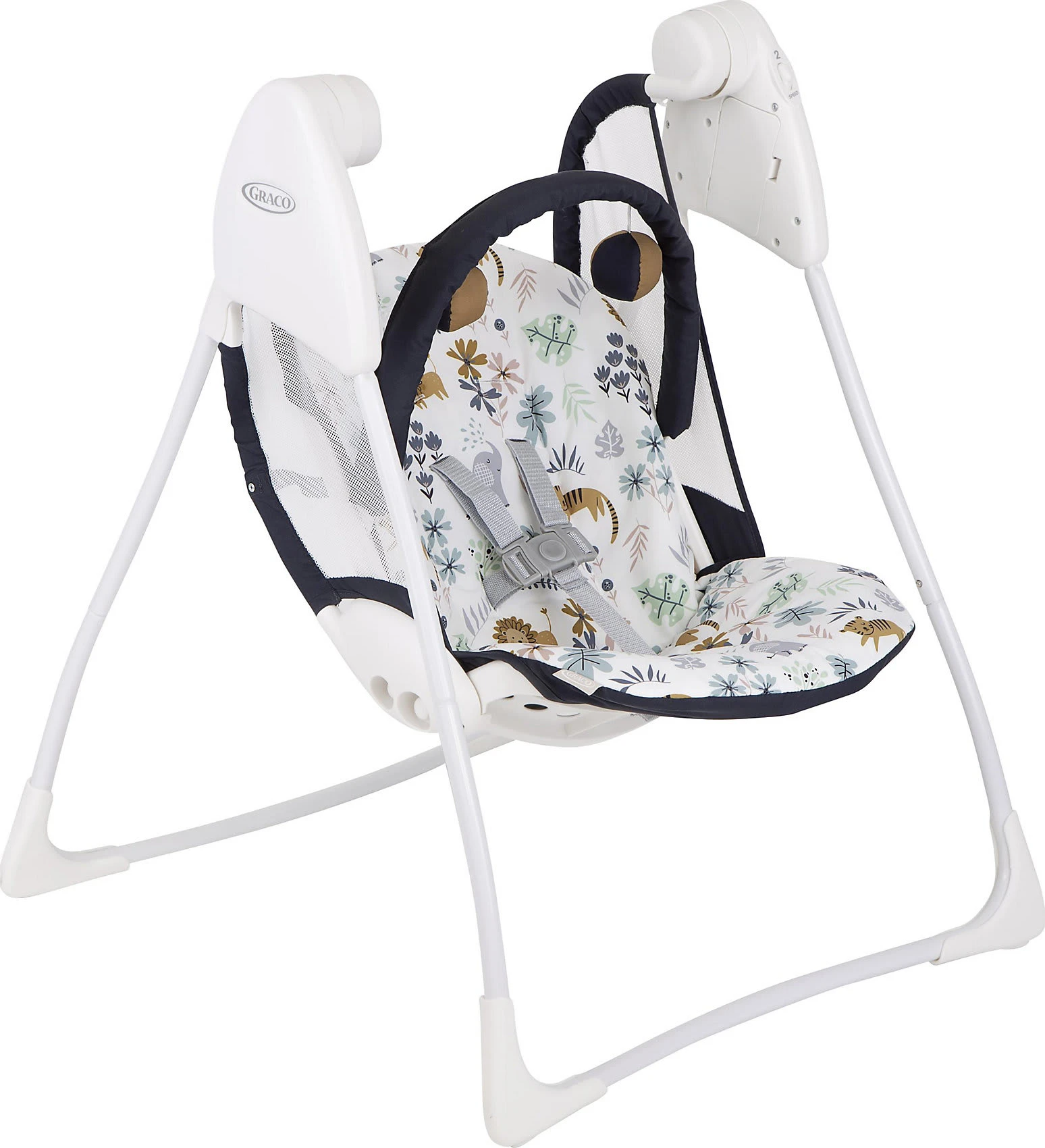 Wenn du wenig Platz hast, aber dennoch nicht auf den Komfort einer Babyschaukel verzichten willst, ist die Graco Babyschaukel Baby Delight™ genau das Richtige: Die Schaukel wird euch mit einem kompakten Klappmechanismus, leichtem Gewicht (nur knapp 5 kg) und zwei Schaukelgeschwindigkeiten begeistern. Zur Beschäftigung oder Beruhigung kannst du