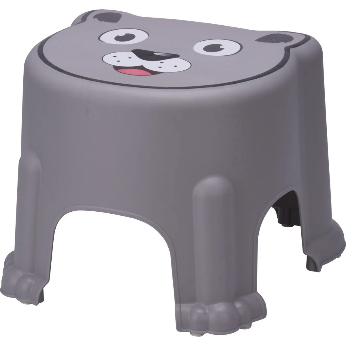 Hockerfür ein Kind mit einem Sitz, auf dem eine Illustration des Mundes eines freudigen Haustieres platziert ist