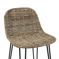 für modern rustikales Flair, aufwändig geflochtener Sitz, in trendigem Grauton gekalkt, stabiles Gestell aus mattschwarz lackiertem Metall mit belagschonenden Kunststoffnoppen, Belastbarkeit ca. 100 kg