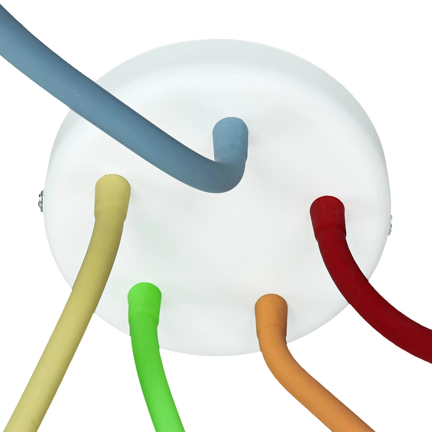 Fassung: 5x E27 bis 60W | Farbe: Bunt | Material: Metall, Kunststoff | Spannung: 230V | Spritzschutzklasse:IP20 | Farbenfrohe Deckenleuchte für das Kinderzimmer mit beweglichen Flexarmen | Dank der biegsamen Arme lassen sich Look und Lichtrichtung der Deckenlampe individuell anpassen – perfekt für hohe und niedrige Decken | Die bunte Kinderlampe ist ein dekorativer Blickfang und begeistert Jungen und Mädchen von Klein bis Groß | Die Lampenschirme erlauben eine großzügige und zielgerichtete Lichtstreuung | Freie Leuchtmittelwahl: Helligkeit und Lichtfarbe können durch LED-Leuchtmittel variiert werden | nicht inklusive