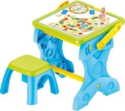 Bei diesem Produkt gibt es so einiges zu entdecken. Der Spieltisch von Lisciani bietet eine große Auswahl an kreativen Beschäftigungsmöglichkeiten. Als Tisch mit dazugehörigem Hocker oder mit nur wenigen Handgriffen zur LED-Tafel umfunktioniert. Insgesamt zehn Lernspiele und ein Puzzle könne hier entdeckt und gespielt werden. Und mit den fluoreszierenden Stiften können bunte Zeichnungen entstehen. So viel Spaß und Abwechslung verbergen sich in nur einem Produkt.