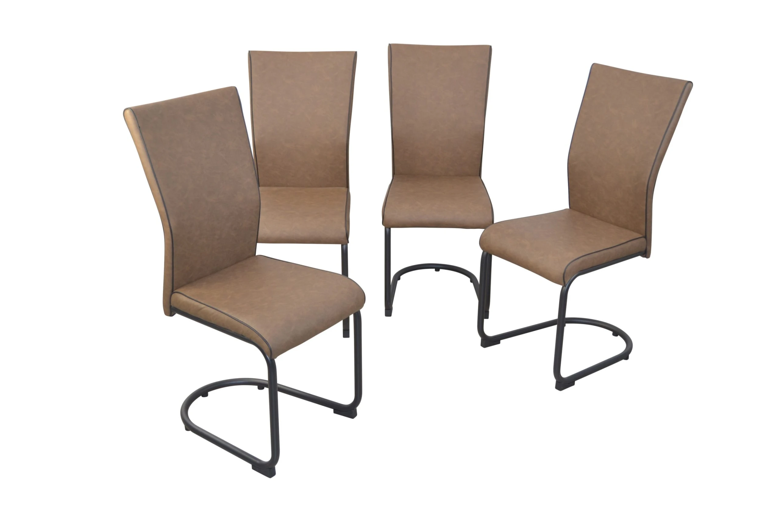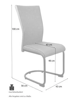 Bequeme Stühle mit einem Stahlrohrgestell, schwarz pulverbeschichtet. Sitz und Rücken sind bequem schaumstoffgepolstert und mit einem pflegeleichten Kunstlederbezug (100% Polyurethan), braun bezogen. Die Nähte sind schön mit einem dunkelbraunen Keder genäht. Rücken ergonomisch geformt, dadurch hat man einen angenehmen Sitzkomfort. Stühle werden zerlegt mit ausführlicher Aufbauanleitung angeliefert. Maße ca. cm: B. 43 x T. 56 x H. 100 cm. Sitzhöhe ca. 48 cm, Sitztiefe ca. 43 cm.
