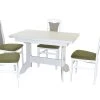 Hochwertige 3tlg. Essgruppe bestehend aus 2 Massivholzstühlen und 1 Esstisch mit zwei Ansteckplatten zum Vergrößern. Stühle aus Massivholz Buche, buchefarben gebeizt und lackiert. Sitz und Rücken sind bequem schaumstoffgepolstert und mit attraktiven Stoffbezügen bezogen. Sitz mit einem Bezug in Kunstlederoptik (100% Polyester), Rücken mit einem Strukturstoffbezug (90% Polyester/10% Rayon). Praktisch die eingearbeitete Griffmuschel im oberen Rückenbereich. Esstisch mit zwei Ansteckplatten (je ca. 30 cm breit), die rechts/links unter der Tischplatte eingeschogen sind, dadurch lässt sich die Tischplatte einfach und schnell von 67 cm bis auf 127 cm vergrößern. Beine vom Esstisch aus Massivholz Buche, buchefarben gebeizt und lackiert. Platten aus Holzwerkstoff die mit einem pflegeleichten Melamin-Holzdekor, Buche-Nachbildung, beschichtet sind. Die Stühle werden montiert angeliefert, der Esstisch flach verpackt zur Selbstmontage, inklusive Aufbauanleitung. Maße ca. cm je Stuhl: (B/H/T) 45/95/48. Sitzhöhe ca. 46 cm, Sitztiefe ca. 39 cm. Maße ca. cm Esstisch: (B/H/T) 67-127/75/67.