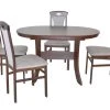 Hochwertige 5tlg. Essgruppe bestehend aus 4 Massivholzstühlen und 1 Esstisch. Stühle aus Massivholz Buche, nussbaumfarben gebeizt und lackiert. Sitz und Rücken sind bequem schaumstoffgepolstert und mit attraktiven Stoffbezügen bezogen. Sitz mit einem Bezug in Kunstlederoptik (100% Polyester), Rücken mit einem Strukturstoffbezug (90% Polyester/10% Rayon). Praktisch die eingearbeitete Griffmuschel im oberen Rückenbereich. Esstisch mit einem modernen Säulengestell komplett aus Holzwerkstoff gefertigt und mit einem strapazierfähigen, pflegeleichten Melamin-Holzdekor, Nussbaum-Nachbildung, beschichtet. Zusätzlich 2 silberfarbene Rohre im Säulengestell kombiniert. Die Stühle werden montiert angeliefert, der Esstisch flach verpackt zur Selbstmontage, inklusive Aufbauanleitung. Maße ca. cm je Stuhl: (B/H/T) 45/95/48. Sitzhöhe ca. 46 cm, Sitztiefe ca. 39 cm. Maße ca. cm Esstisch: (B/H/T) 120/75/80