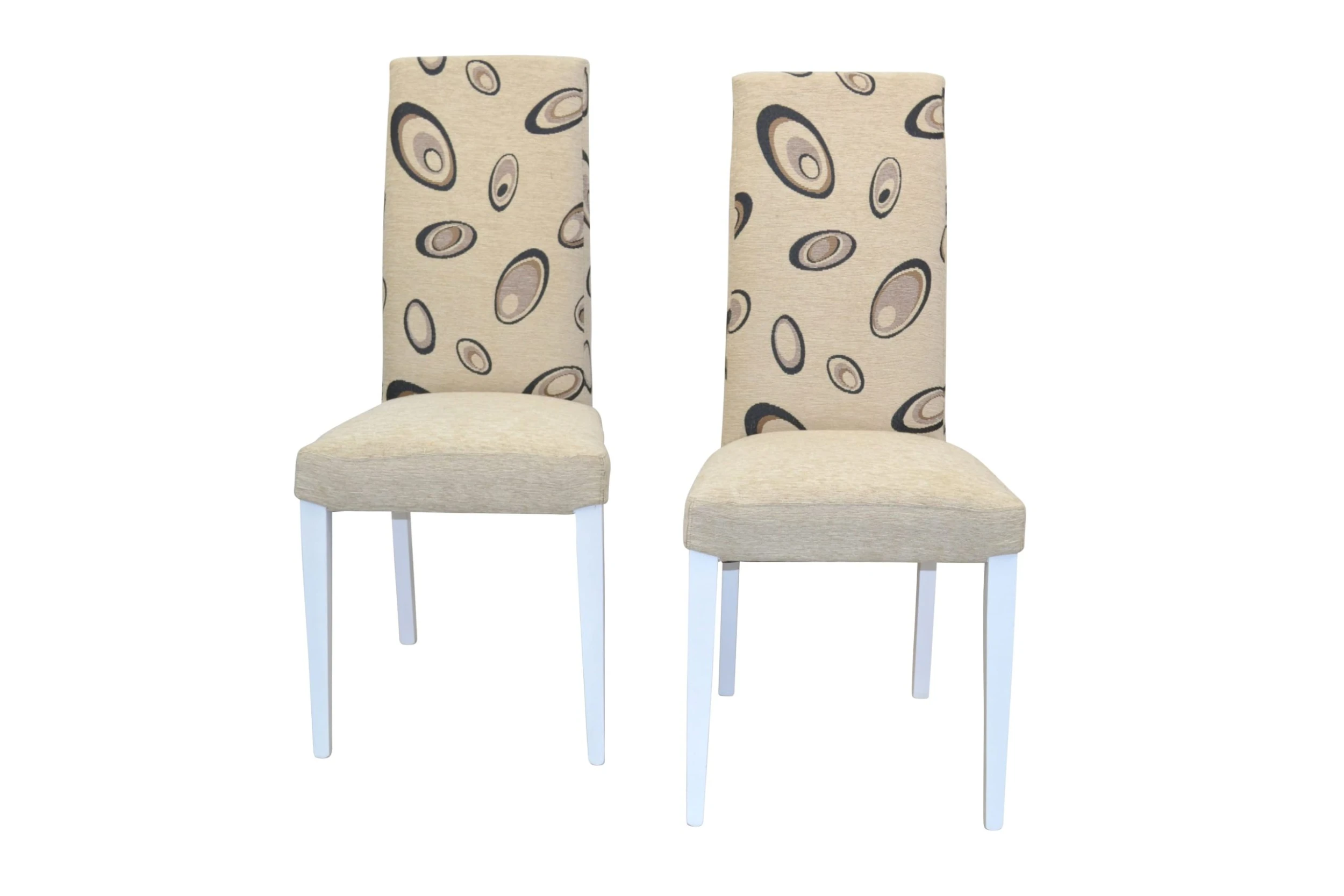 Polsterstühle (2Stück) mit Beinen aus Massivholz Buche, Polsterstühle (2Stück) mit Beinen aus Massivholz Buche, weiß lackiert. Sitz und Rücken sind schaumstoffgepolstert und mit attraktiven, pflegeleichten Stoffbezügen bezogen. Im Sitz unifarben im Rücken gemustert. Lieferung der Stühle erfolgt montiert. Maße ca. cm: (B/H/T) 46/100/57. Sitzhöhe ca. 50 cm, Sitztiefe ca. 37 cm. Lieferbar in drei Stoffvarianten. Stoffzusammensetzungen: Stoffbezug TERRA (82% Polyester/18% VISKOSE) // Stoffbezug beige (33% Polyester/49% Polyacryl/18% Viskose) // Stoffbezug braun (54% Polyester/46% Polyacryl). gebeizt und lackiert. Sitz und Rücken sind schaumstoffgepolstert und mit attraktiven, pflegeleichten Stoffbezügen bezogen. Im Sitz unifarben im Rücken gemustert. Lieferung der Stühle erfolgt montiert. Maße ca. cm: (B/H/T) 46/100/57. Sitzhöhe ca. 50 cm, Sitztiefe ca. 37 cm. Lieferbar in drei Stoffvarianten. Stoffzusammensetzungen: Stoffbezug TERRA (82% Polyester/18% VISKOSE) // Stoffbezug beige (33% Polyester/49% Polyacryl/18% Viskose) // Stoffbezug braun (54% Polyester/46% Polyacryl).