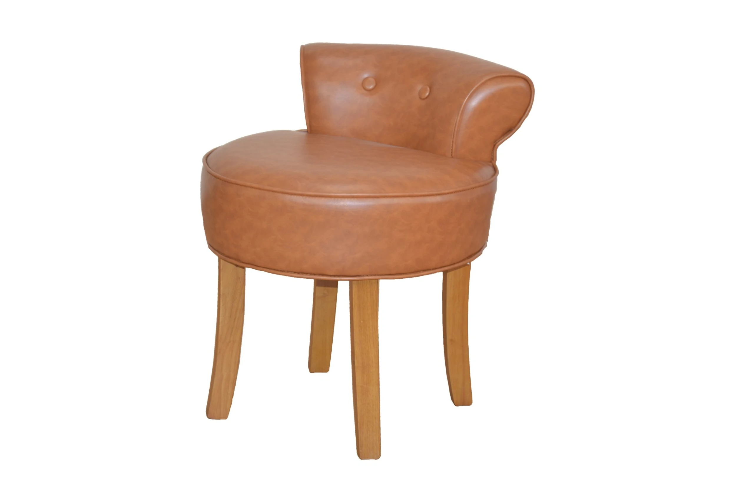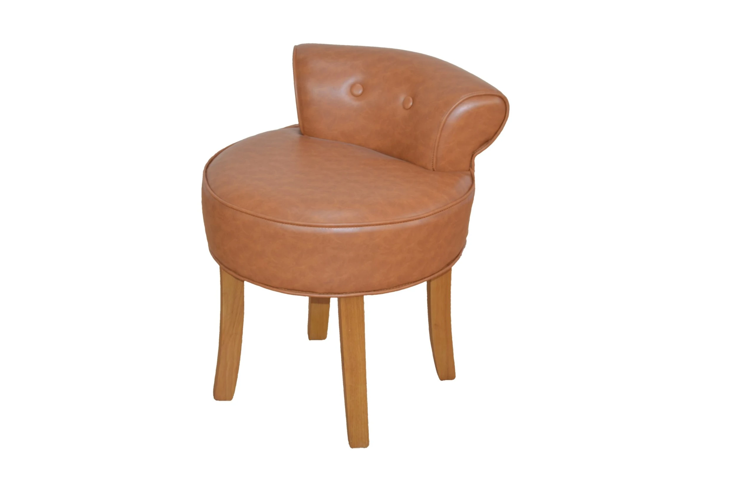 Bequemer Sitzhocker mit Rückenlehne. Gestell aus Massivholz Pinie, naturbraun gebeizt und lackiert. Sitzfläche und Rücken mit einem festen Schaumstoffkern, bezogen mit einem pflegeleichten Kunstlederbezug, 100% Polyurethan. Dieses Möbelteil ist durch seine schöne Optik ein schickes Möbelaccessoires für den gesamten Wohnbereich. Lieferung erfolgt montiert, einfach nur auspacken und fertig. Maße ca. cm: 46 x T. 47 x H. 58 cm, Sitzhöhe ca. 45 cm.