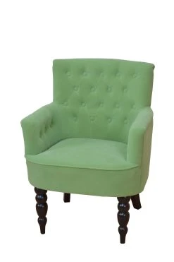 Bequemer Sessel mit einer schaumstoffgepolsterten Sitzschale. Stabiles Gestell aus Massivholz, Beine schwarz lackiert. Rückeninnenseite mit einer attraktiven Knopfsteppung. Mit einem weichen Samtbezug, 100% Polyester, in einer trendigen Farbe, grün, bezogen. Artikel wird aufgebaut geliefert, einfach nur auspacken.